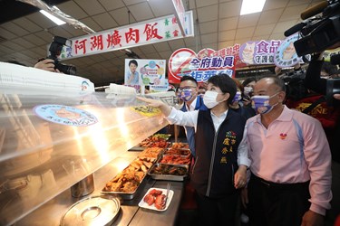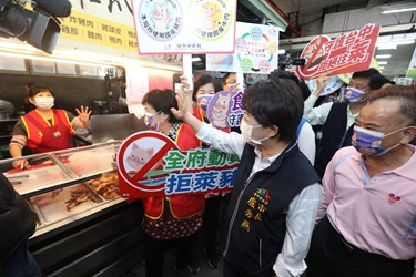 因應中央明年元旦將開放含萊克多巴胺美豬進口,台中市政府已在全市設立33處肉品產地標示示範區,要求業者標示來源,守護市民食安。市長盧秀燕今(25)早率隊前往北屯區東光市場視察,逐攤檢視產地標示張貼情形,她強調,市府已做好整備,全力輔導、查核肉品產地標示,要讓市民「安全飲食、安心消費!」