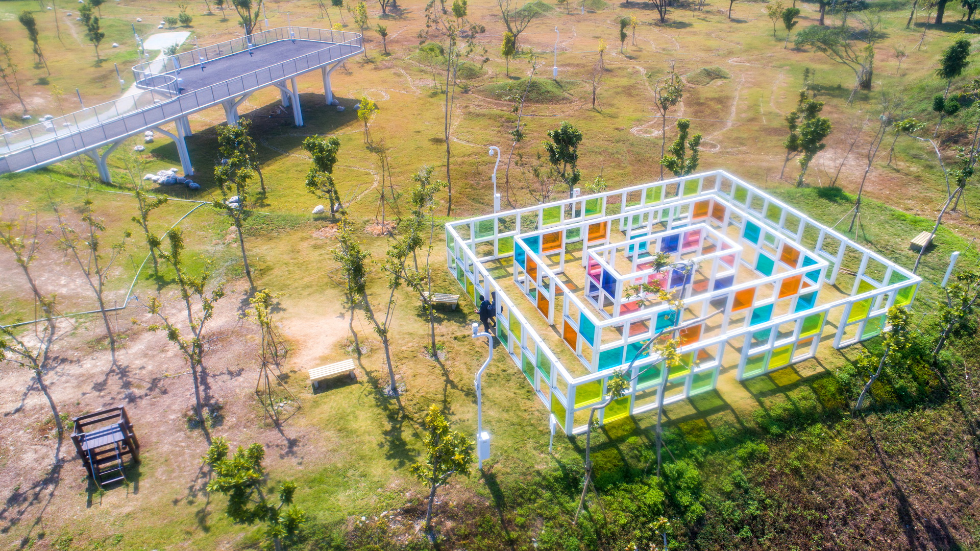 除了跨年晚會,觀旅局表示,中央公園本身還有許多網美景點,「抹茶湖」可眺望科湳愛琴橋、視覺體驗區「彩色玻璃迷宮路徑」,是臺中目前最熱門的拍照打卡景點,周邊還有許多旅宿飯店任君挑選。
