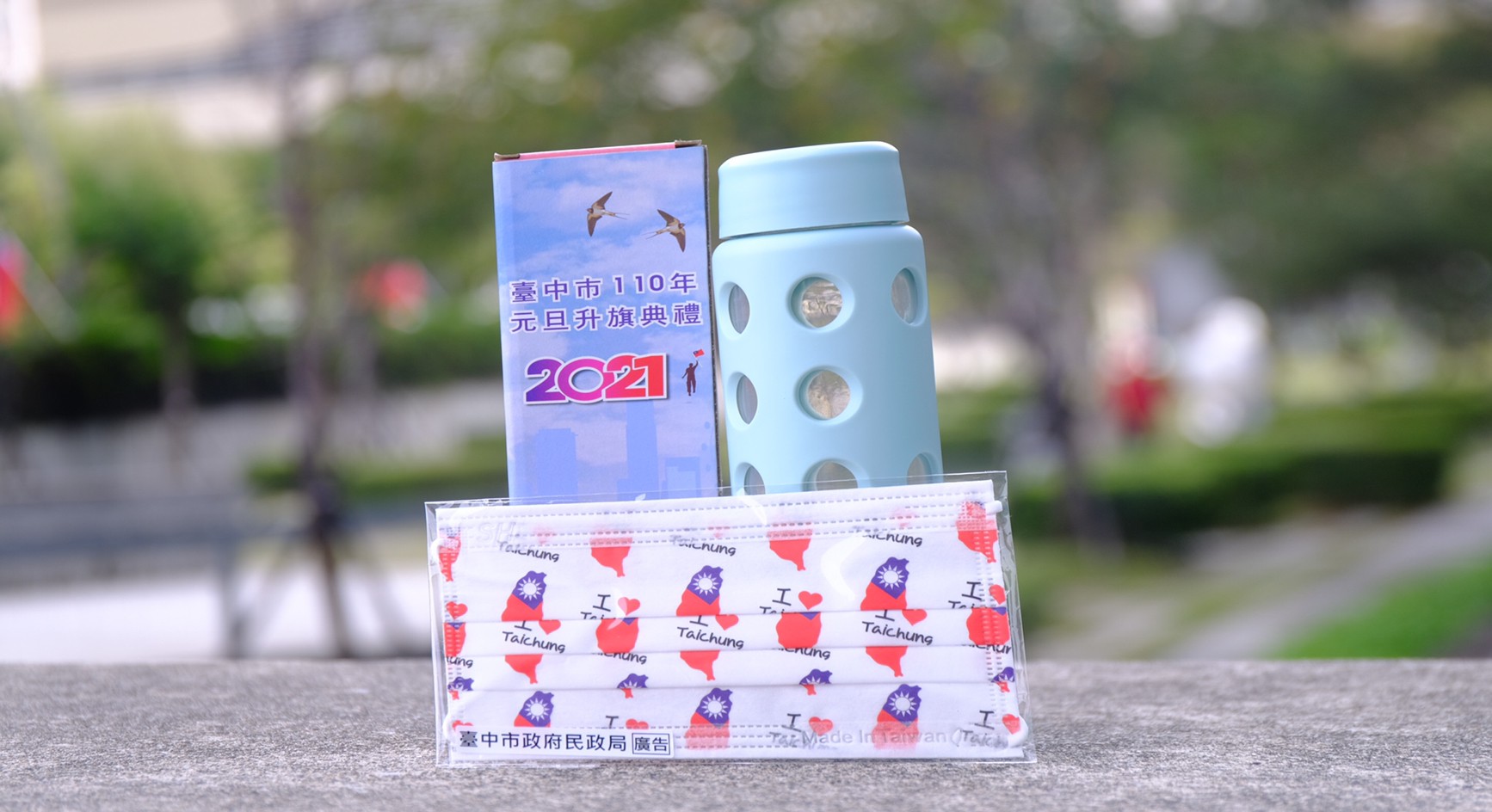 民政局提到,今年市府準備了限量宣導品「風潮水瓶」,更加碼發放限量國旗意象口罩、手持小國旗及陳允寶泉食品贊助的太陽餅,典禮當天早上6點30分開始發放,每人各限領1個,送完為止。
