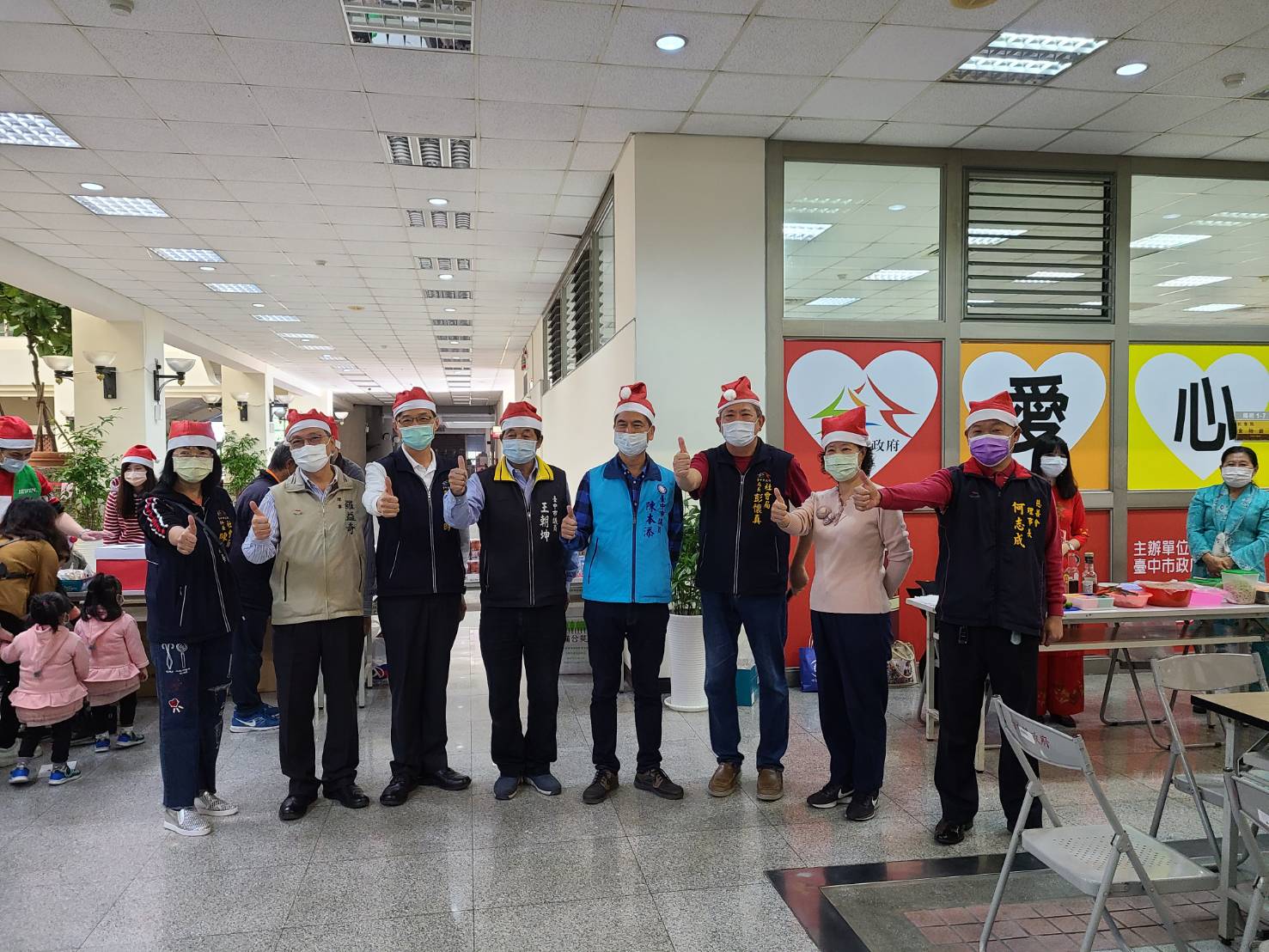 社會局長彭懷真表示,台中市食物銀行目前有三家實體店面、34個發放站,每月最後一個星期六發放物資。豐原區發放站位於陽明市政大樓內,由台中市五天門慈善協會承接服務,協會規模不大,卻有強大的能量,盡心照顧山線每個轄區,每月約有500個家戶受到扶助,包含今日抽獎的耶誕禮物,也是由五天門慈善協會所協助募集。