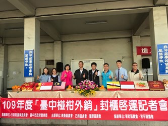 農業局表示,市府多年來將農產品國外行銷列為重點目標,期許透過外銷穩定國內農產品市場價格。今年椪柑在疫情中仍創下外銷佳績,今(29)日東勢區農會與石岡區、豐原區農會共同舉行「台中椪柑外銷封櫃啟運記者會」,由農業局副局長蔡勇勝出席,將一箱箱金黃飽滿的椪柑禮盒裝入貨櫃。
