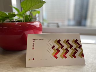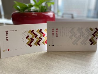 今年市長新年賀卡,從信封到卡片選用純白色調輔以金色紅色燙金,提升節日喜氣感,希望收到賀卡的同時,除了感受祝福、也感受台中的改變,盼2021攜手所有市民一同「犇向幸福」。 (12/30*14)*秘書處