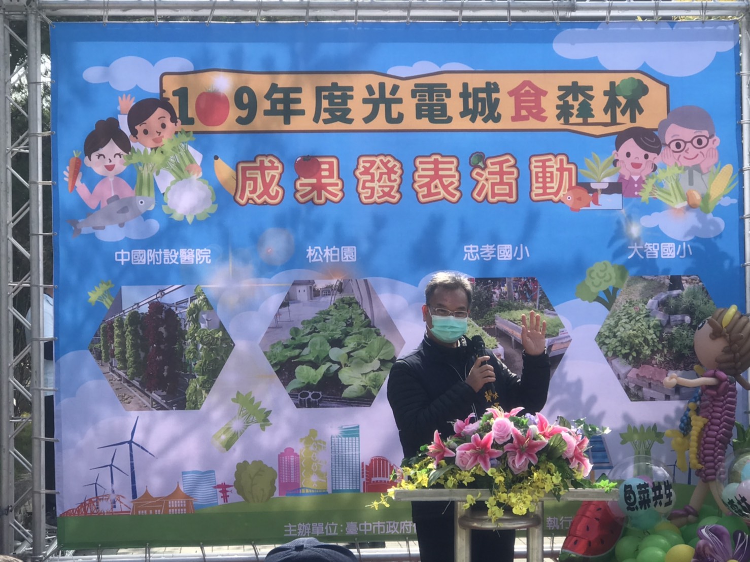 低碳城市推動辦公室今(30)日在大甲區松柏園老人養護中心,舉辦「109年度光電城食森林成果發表活動」。執行長黃晴曉表示,台灣面臨能源轉型之際,市府規劃「光電城食森林計畫」,除鼓勵推動環保友善的都市農耕,也希望結合綠能永續環境,達到節能減碳之效。