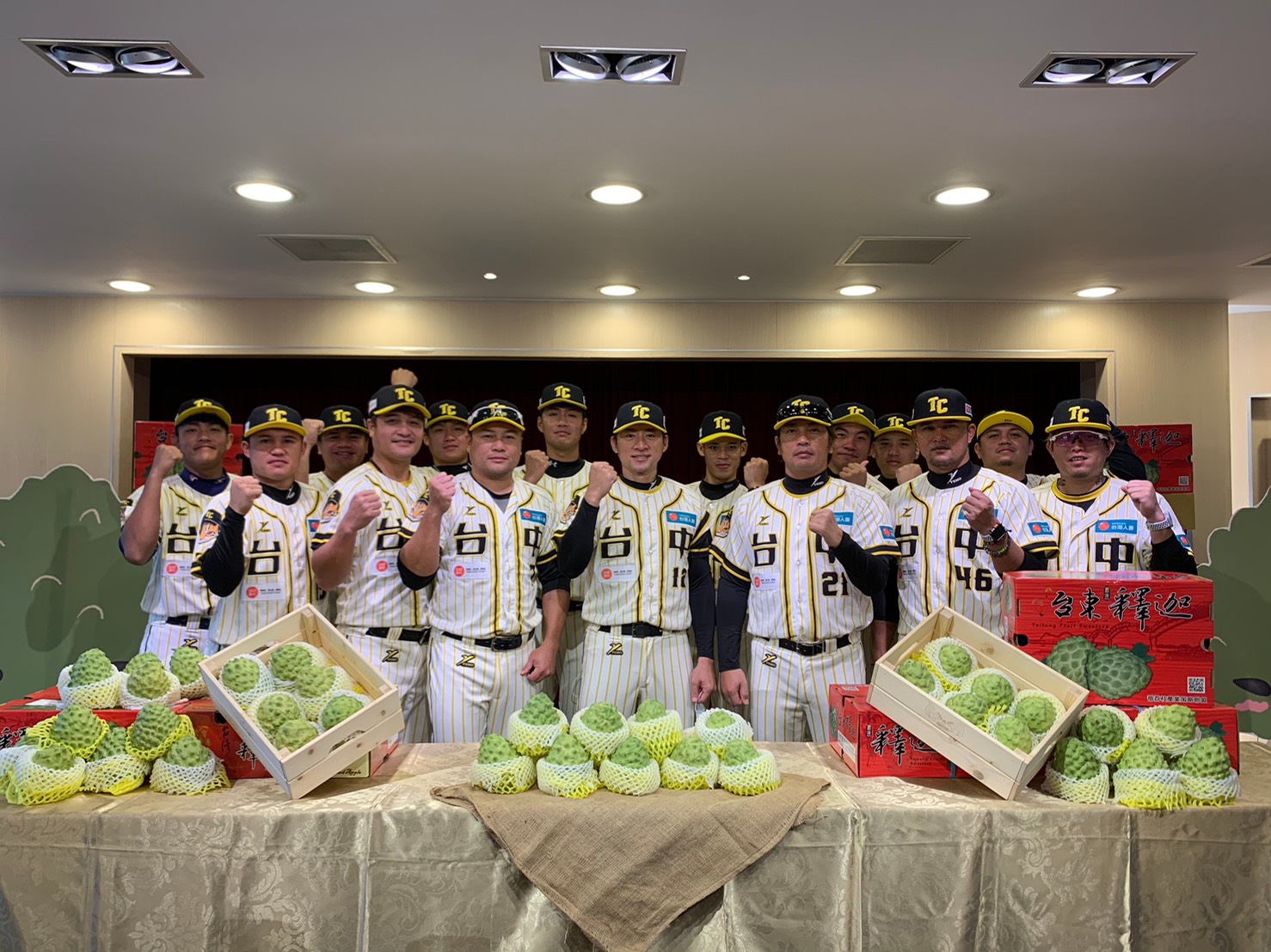 臺中成棒隊球團表示,24位球員中,有10位是台東人;教練團也有4位,比例相當高,可見吃釋迦不只頭好壯壯,更是培育棒球好手的營養補給品,感謝饒縣長帶來他們最愛吃的鳳梨釋迦讓他們在台中打球之餘還能感受到家鄉味。