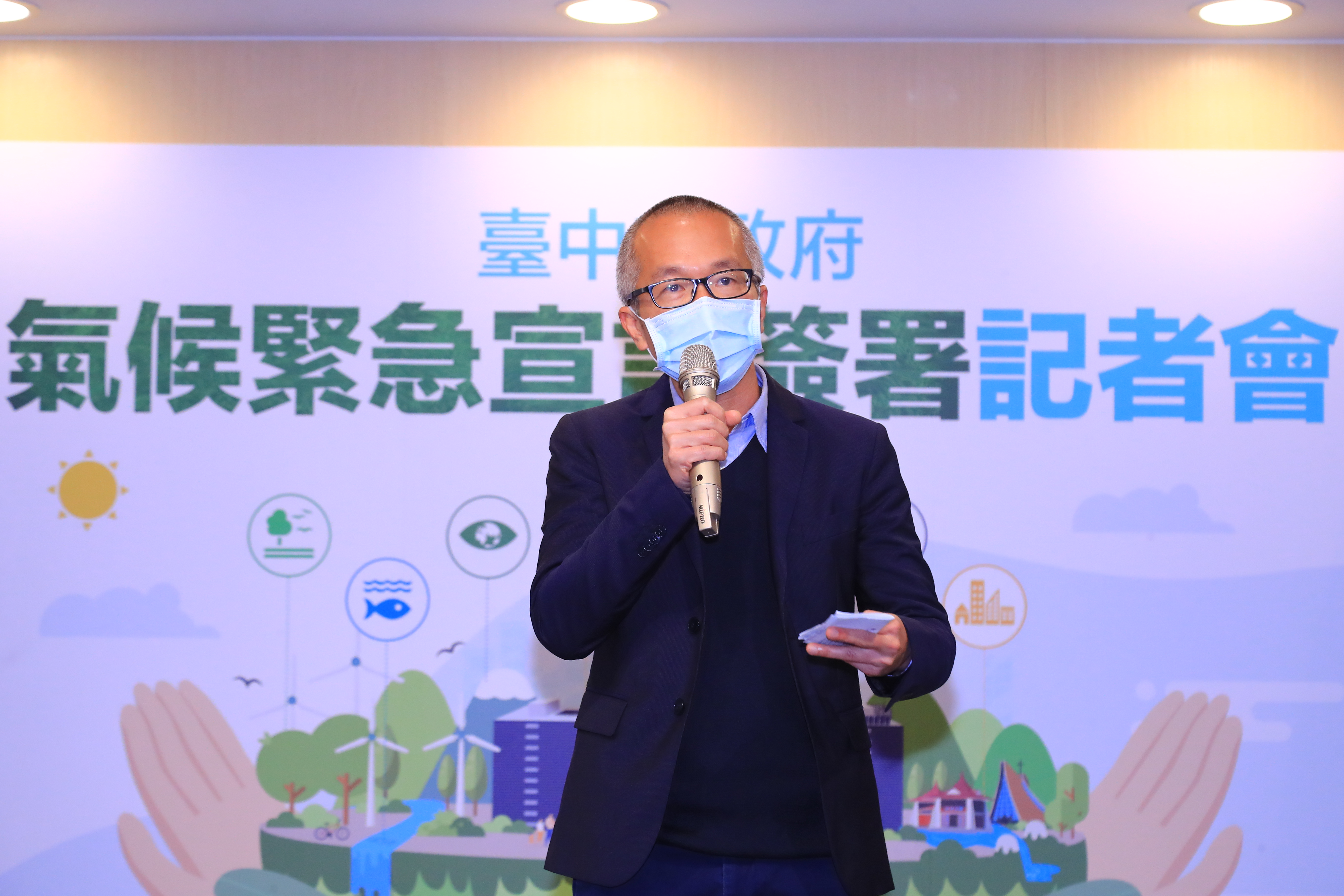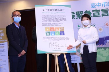 台中巿政府低碳城市推動辦公室今日於台灣大道市政大樓舉辦「台中市氣候緊急宣言」簽署記者會,盧市長出席簽署「氣候緊急宣言」。「地球只有一個!」盧市長表示,氣候急遽惡化中,對生活環境、經濟等都有重大影響,台中身為台灣第二大城市,責無旁貸,因此簽署「氣候緊急宣言」,經過各局處多次研商後提出「永續168目標策略」,希望於2023年打造無煤城市,為環境盡一份心力。