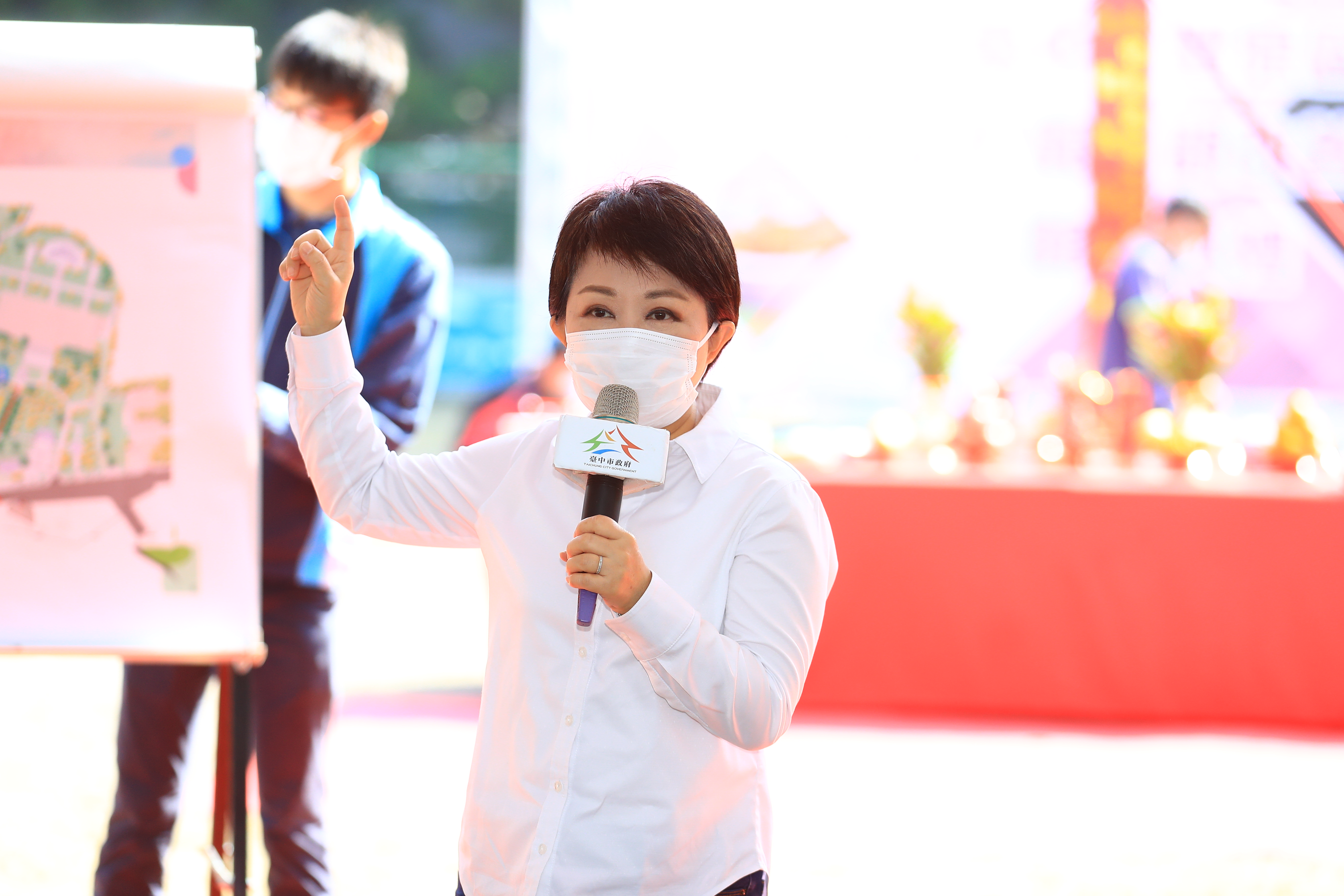 盧市長、建設局長陳大田、消防局長曾進財、立法委員江啟臣、台中市議員張瀞分、陳清龍、王朝坤、豐原區長洪峰明及多位地方里長今日均出席開工典禮,市議員陳本添也派代表到場致意。(2/5*7)*建設局