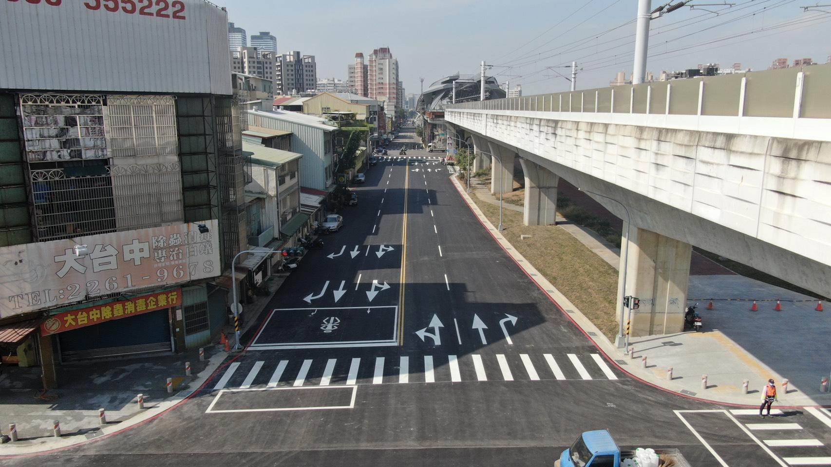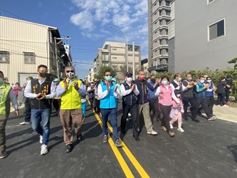 陳局長說明,潭子區民生街位於台鐵及台3線東側,原需經地下道穿越台鐵,鐵路高架化完成後,民生街往北可直達台3線,往南卻僅通行至民生街7號路口;為促進都市縫合,建設局爭取內政部營建署納入生活圈道路交通系統建設計畫編列經費,打通53公尺道路,於去年8月底開工,昨日開放通行,讓民生街可連通台3線與福貴路兩條幹道,暢通區域交通,配合日前通車的福貴路銜接台3線中山路「校栗林橋」改建工程,居民不用再繞行。