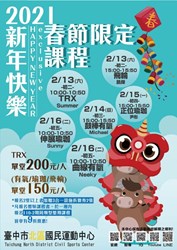 春節假期,台中市各國民運動中心及港區運動公園除了除夕及大年初一休館,其他天數持續開館服務,且多個國民運動中心加碼推出春節優惠活動,包括朝馬國運推出的「滿額扭(牛)好康」、北區國運春節限定優惠課程方案,以及長春國民暨兒童運動中心則邀請生肖「屬牛」市民享有使用泳池或健身房「兩人同行、一人免費」優惠,多項新春優惠活動等民眾參與。