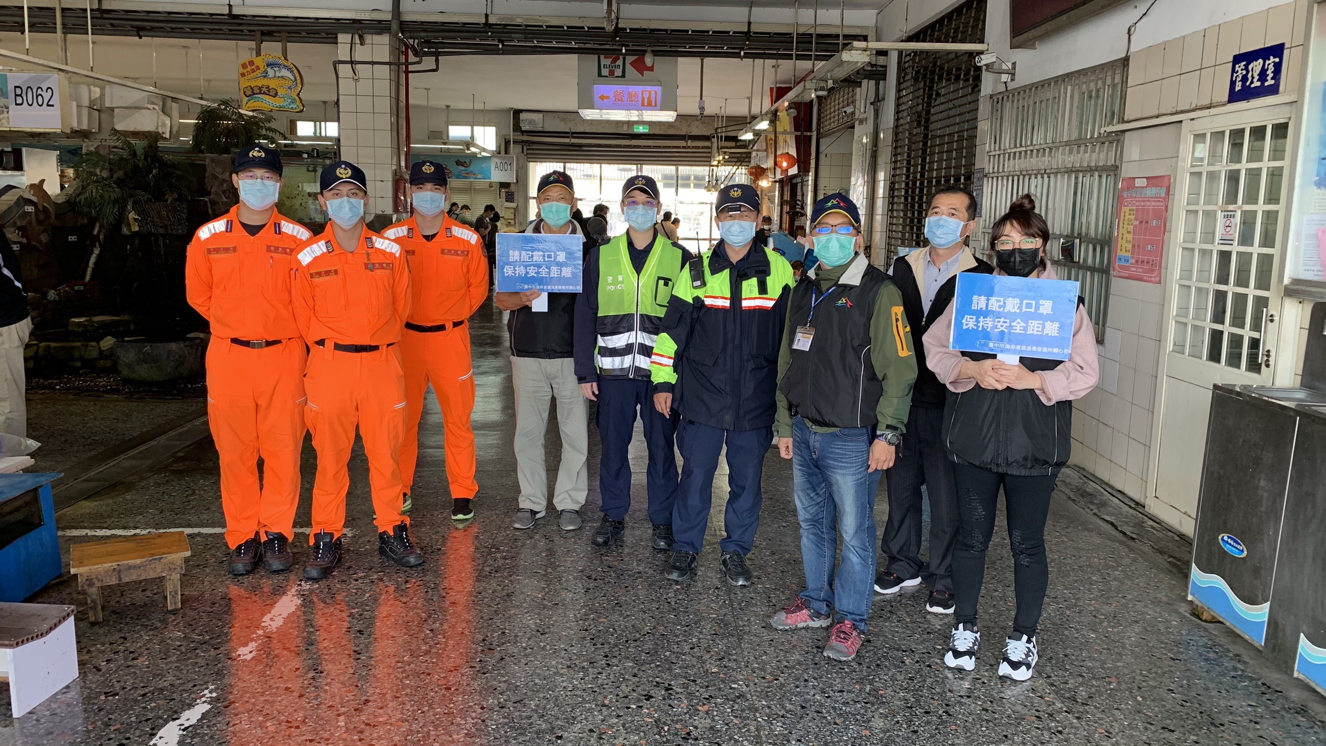 年節將至,台中市政府農業局為讓民眾於春節期間安心至梧棲漁港觀光,特別請台中區漁會於春節前進行港區消毒,同時聘請外語翻譯人員以雙語宣導外籍船員應做好戴口罩、保持安全社交距離等防疫措施,讓大家安心過新年。