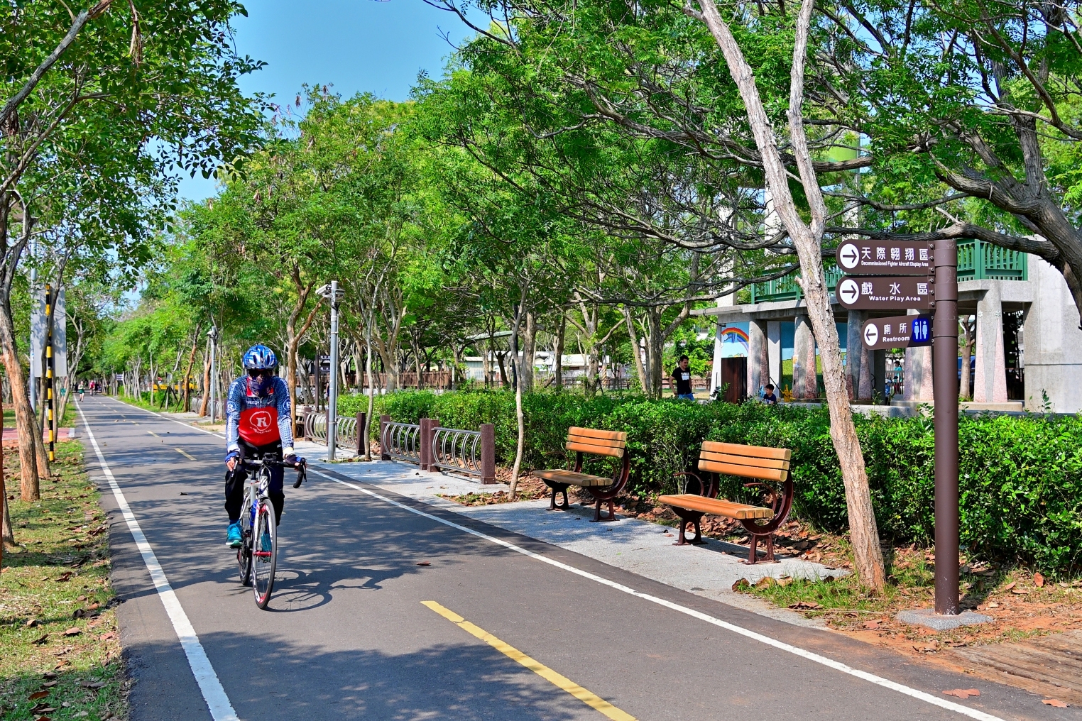 林局長推薦,想觀賞小麥田的朋友們,除了可以直接前往大雅麥田外,也可以先前往潭雅神綠園道體驗騎乘自行車,至大雅後轉道神林路寶興宮附近麥田順遊。潭雅神綠園道由軍方舊鐵道所改建而成,起點為潭子區,行經神岡至大雅中科園區為終點,全長約14公里,路面坡度平緩,是個老少咸宜的自行車道。沿途有綠蔭及驛站提供遊客休憩,在自行車道約4K+800m處的「S彎道」及5K+100的「波浪道」,形成無限延伸和顛簸的視覺效果,成為IG打卡聖地。位於潭子的摘星山莊,有著精細的建築工藝,包含交趾陶、磚雕、泥塑、剪黏等,其中磚雕更是少見的工藝,非常值得細細觀賞,另外屋前池塘的倒影也是遊客必訪美景。