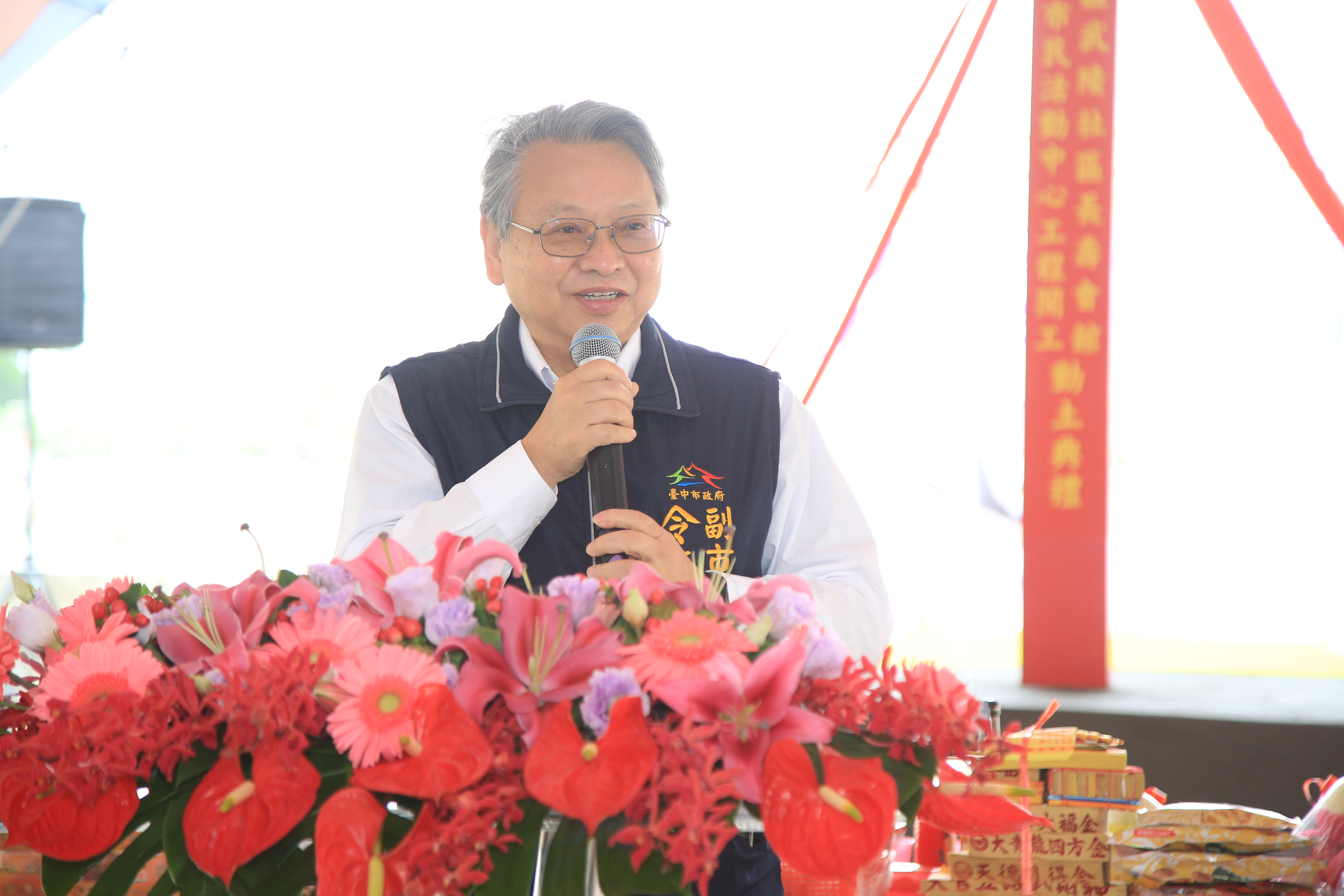 今日典禮,令狐副市長、民政局長吳世瑋、社會局副局長陳仲良、大甲區長顏金源、市議員李榮鴻、吳敏濟、施志昌、市政顧問劉德成、劉國能及在地里長均蒞臨現場,共同為工程祈福,另立法院副院長蔡其昌、台中市議會議長張清照也派代表到場致意。(3/8*15)*民政局