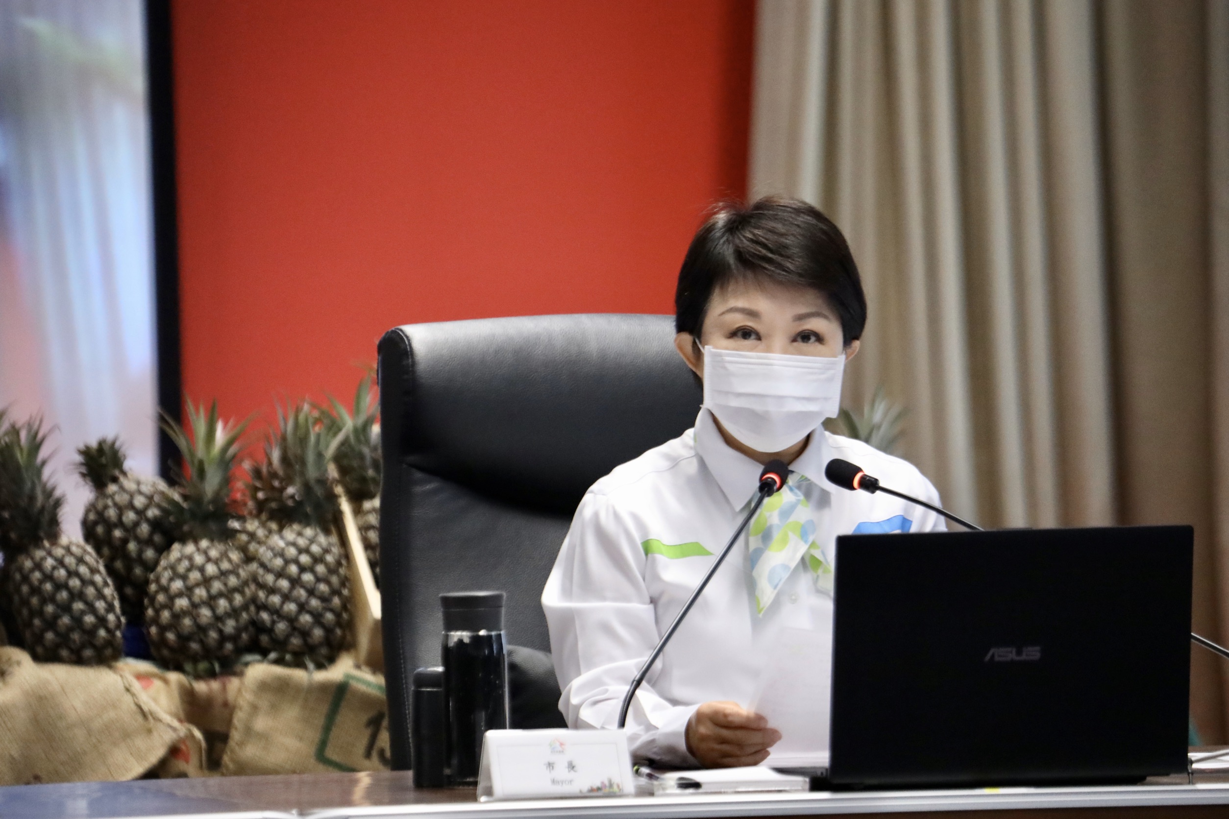 台灣鳳梨3月起外銷受阻,衝擊果農,台中市長盧秀燕為響應「吃鳳梨,挺農民」行動,今(9)早主持市政會議時宣布,市府將全力協助鳳梨行銷,認購15公噸鳳梨透過食物銀行提供予台中市家扶中心,照顧弱勢團體,另洽請各區農會協助促銷15公噸,共將銷售30公噸鳳梨。「多吃鳳梨,有助健康」,她呼籲市民多多食用鳳梨、挺農民!