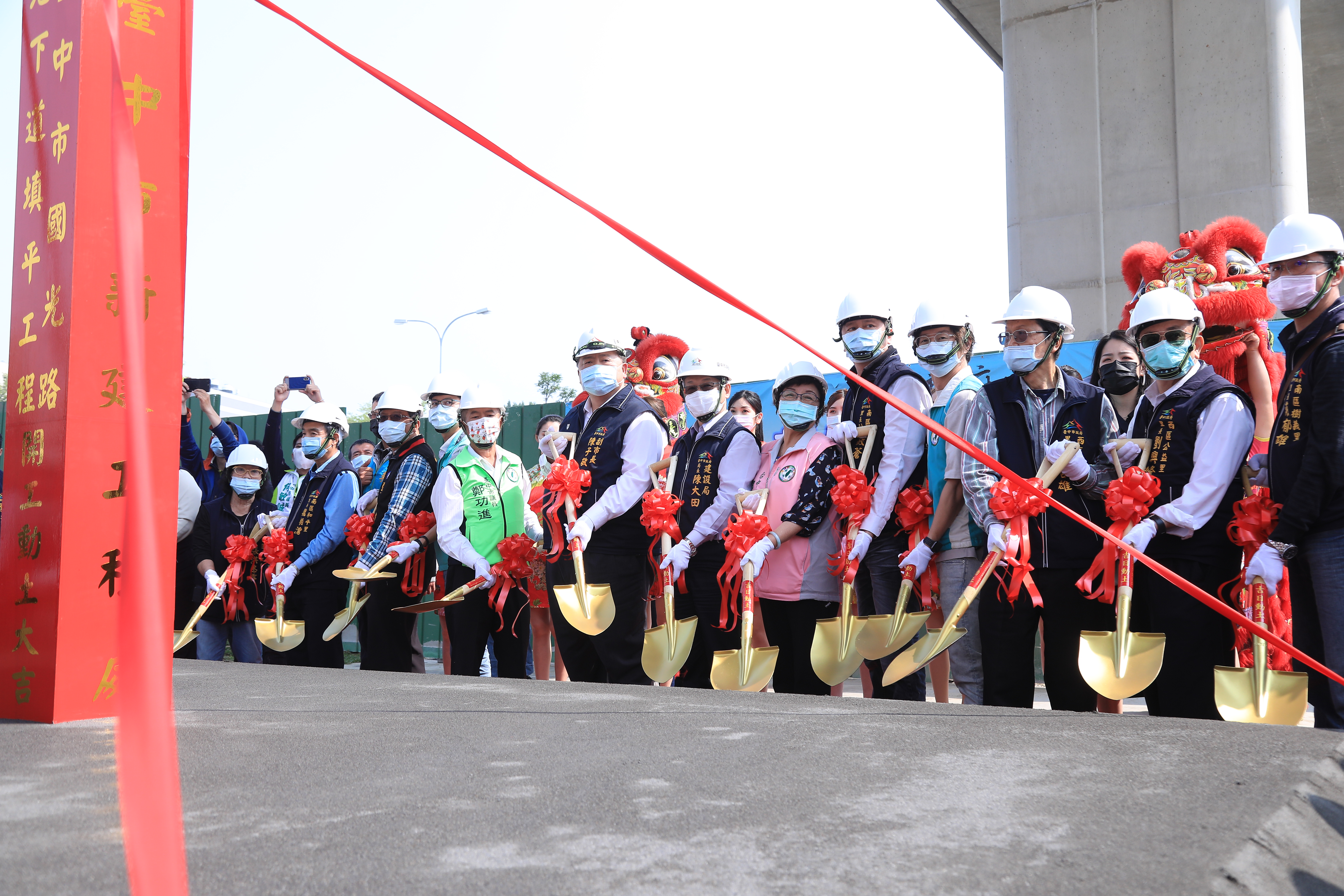 今日動土典禮包括陳副市長、建設局陳局長、政風處長詹政曇、建設局新建工程處代理處長陳聰仁、內政部營建署中區工程處隊長黃永興、市議員江肇國、邱素貞、何敏誠、鄭功進、羅廷瑋、南區區長陳佩玉、西區區長王瑞嘉等人共同為工程祈福,立法委員黃國書、張彥彤服務團隊及多位地方里長也到場關心。