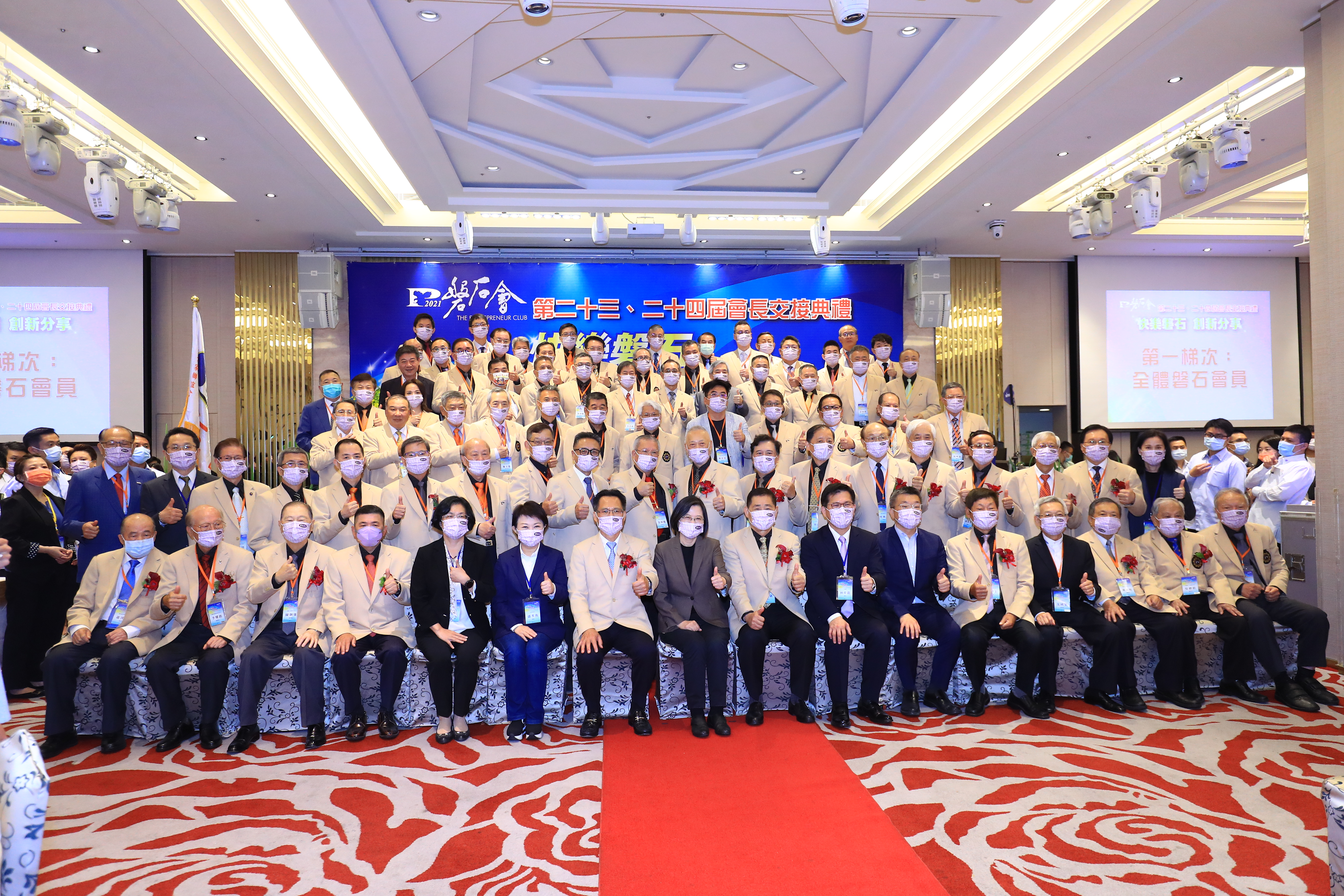 今日磐石會交接典禮,市長盧秀燕擔任監交人,包括總統蔡英文、交通部長林佳龍、立法院副院長蔡其昌、經發局長張峯源等人均到場觀禮。