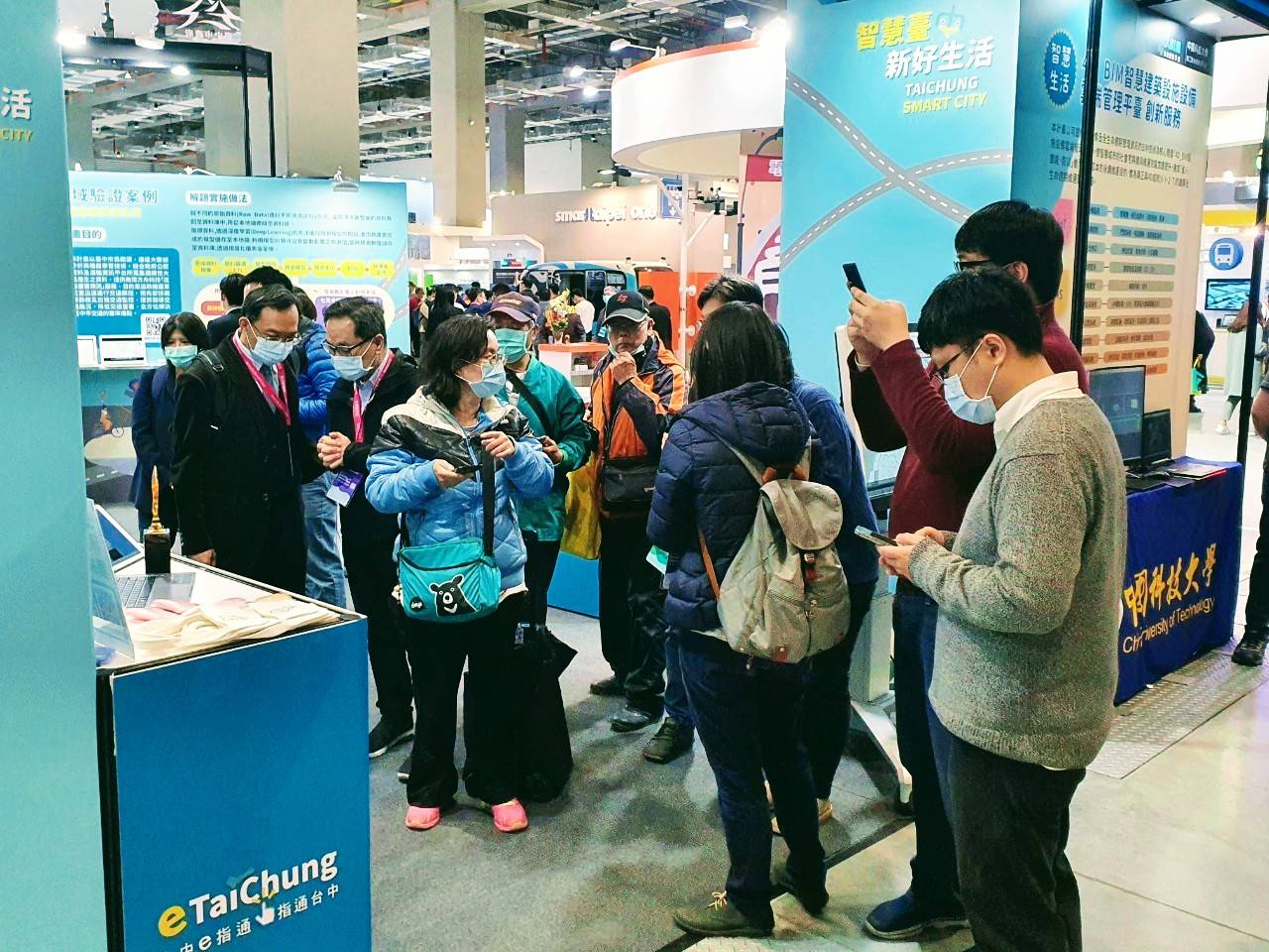 此外,在本府科技應用實例方面,包括「智慧交通」、「智慧生活」與「智慧環境」等主題,其中智慧交通共有「自駕巴士虛實場域整合運行」、「Parking Go路邊停車即時資訊服務」及「智慧動態續進號誌」三項計畫展出。除了提升交通服務品質,市民生活空間的管理藉由科技導入亦是市府努力的方向,如都發局住宅處與中國科技大學攜手打造「BIM智慧建築設施雲端管理平台」,透過物聯網、GIS及雲端平台的連結,提升社會住宅興建與維運效能;此外建設局於水湳經貿園區進行智慧路燈建置計畫,將智慧路燈結合微型氣象站、車牌辨識及車型辨識等功能,並透過後台系統共同監控來提升機關維運管理效能。