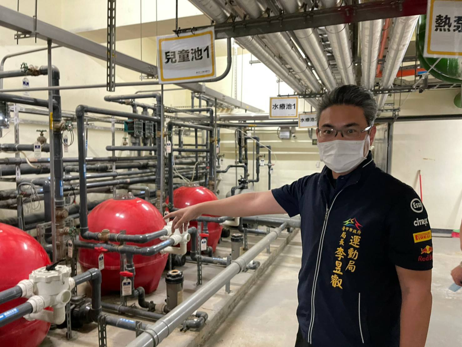 北區國民運動中心擁有符合國際規格的先進泳池,包含競賽池、訓練池、跳水池及兒童池,同時設有SPA水療設施,為落實循環用水,均設有消毒及過濾系統。李局長連續兩日前往北區國民運動中心,視察各項節水作業及過濾系統維護情形。