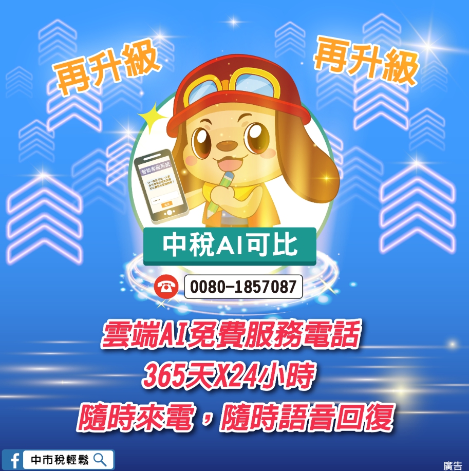 稅務局指出,市府持續精進服務功能,陸續導入真人文字客服及多輪式對話,今年為提供更多元的服務方式,新增雲端AI免費服務電話,民眾只要透過電話詢問(目前以國語為主),中稅AI可比會以語音方式回答民眾地方稅問題。民眾如對使用該系統有任何疑問,可撥打0800-000321免付費電話,或04-22585000按1接全智慧客服中心洽詢。(3/26*8)* 地方稅務局