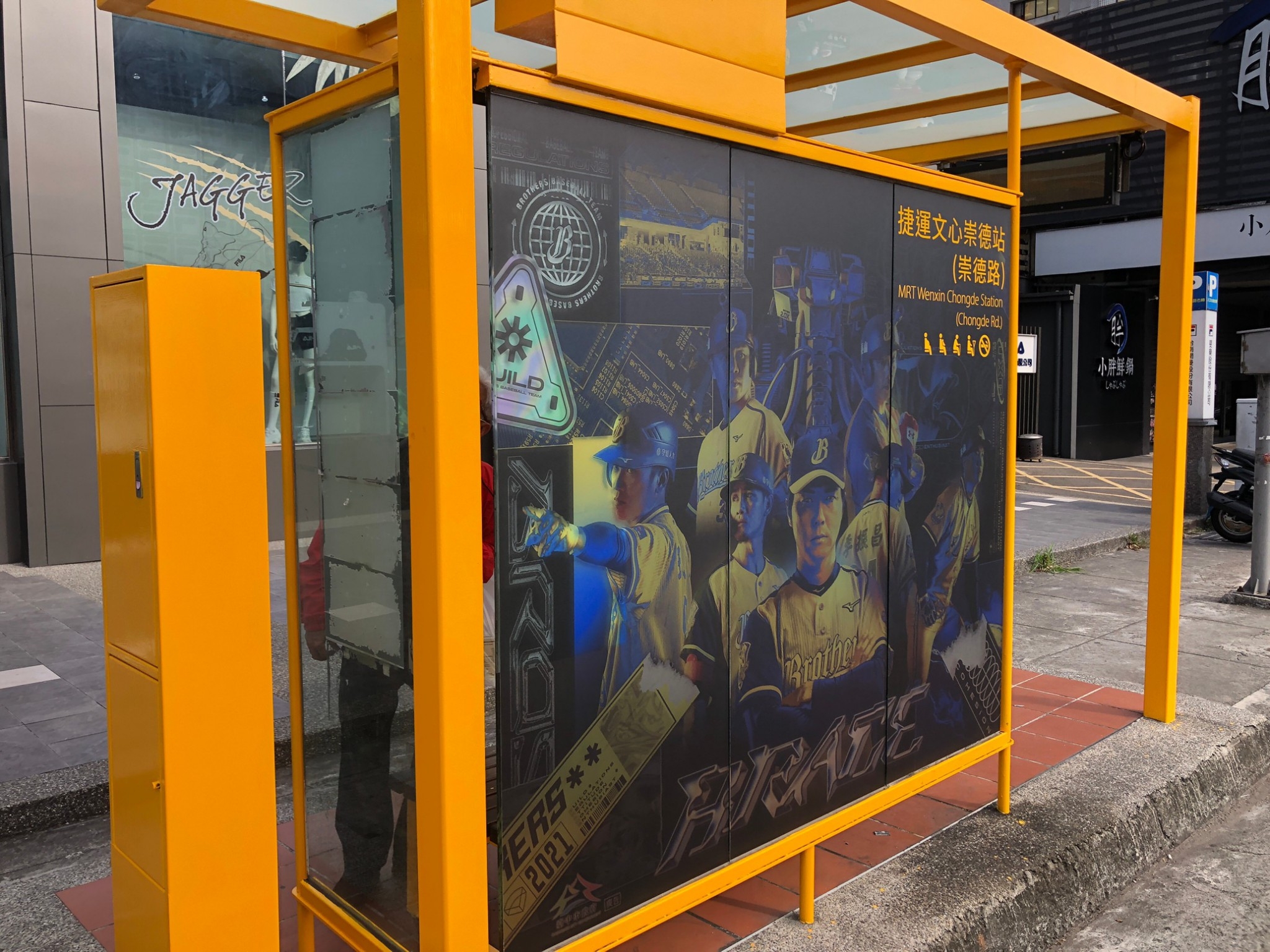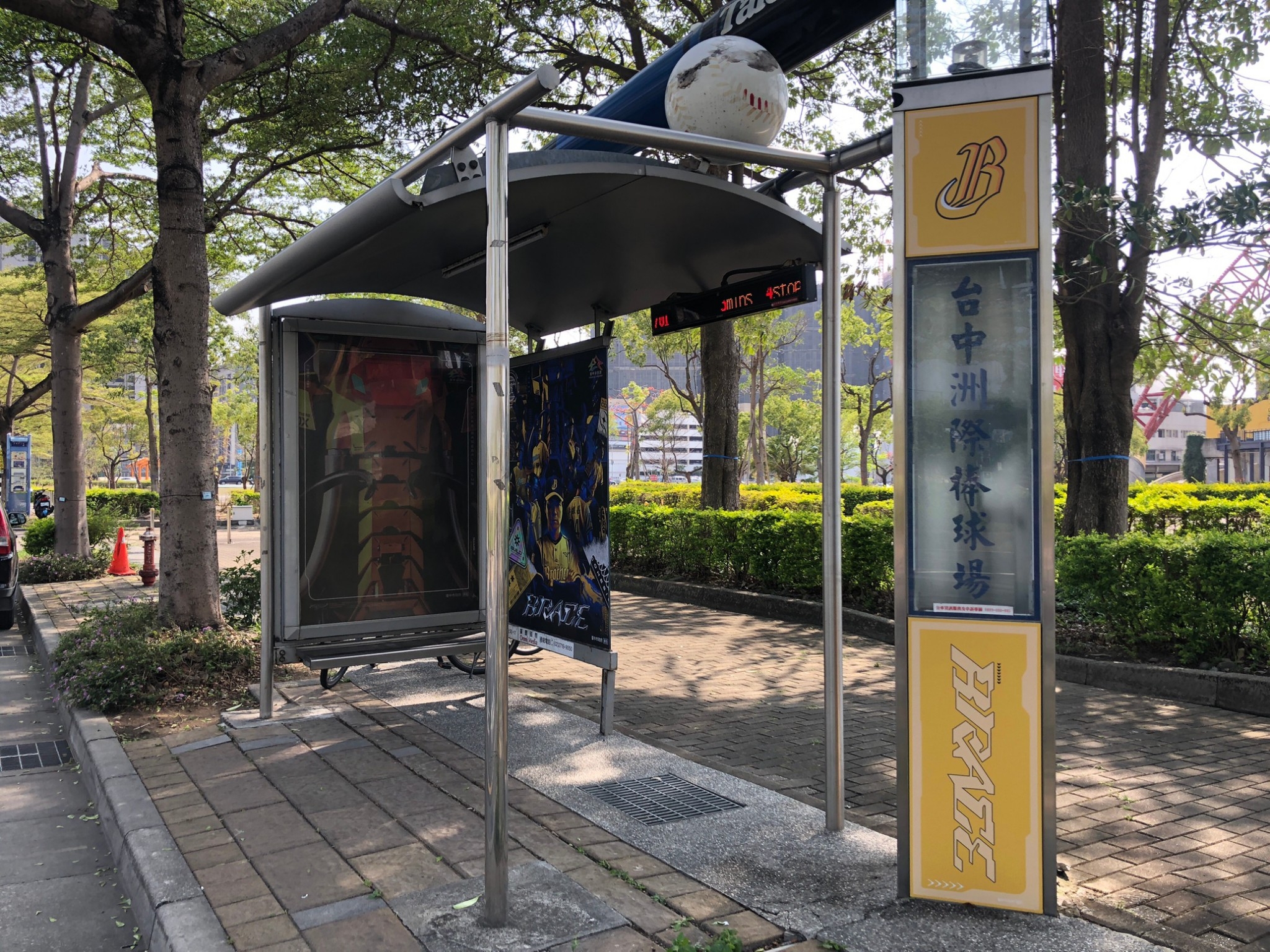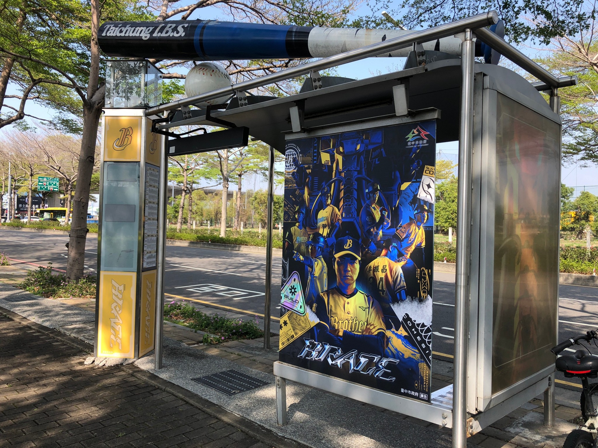 台中捷運綠線即日起至4月23日展開30天免費試營運,其中文心崇德站精心布置中信兄弟「猛瑪•鋼鐸拉」主題常設站,周邊附近的公車候車亭「捷運文心崇德站(崇德路)」及「台中洲際棒球場」也貼上中信兄弟球星及吉祥物主視覺,「台中洲際棒球場」公車亭更有巨型球棒與棒球模型,吸睛又亮眼,歡迎民眾搭公車時順道拍照打卡,一起支持台中在地球隊,為中信兄弟加油。