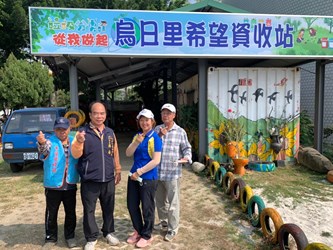 烏日區烏日里長廖福表示,回收物給人髒亂的印象,但烏日里運用回收物改造成為裝置藝術,像是書局廢棄的大型看板改造成具特色的打卡點,融入希望資收站四周環境,打造成休閒文創的風格。里民陳小姐也說,廖里長做事很用心,讓許多第一次到訪的遊客或民眾以為是時下最夯的網美拍照打卡點,打破大家對資收的刻板印象。