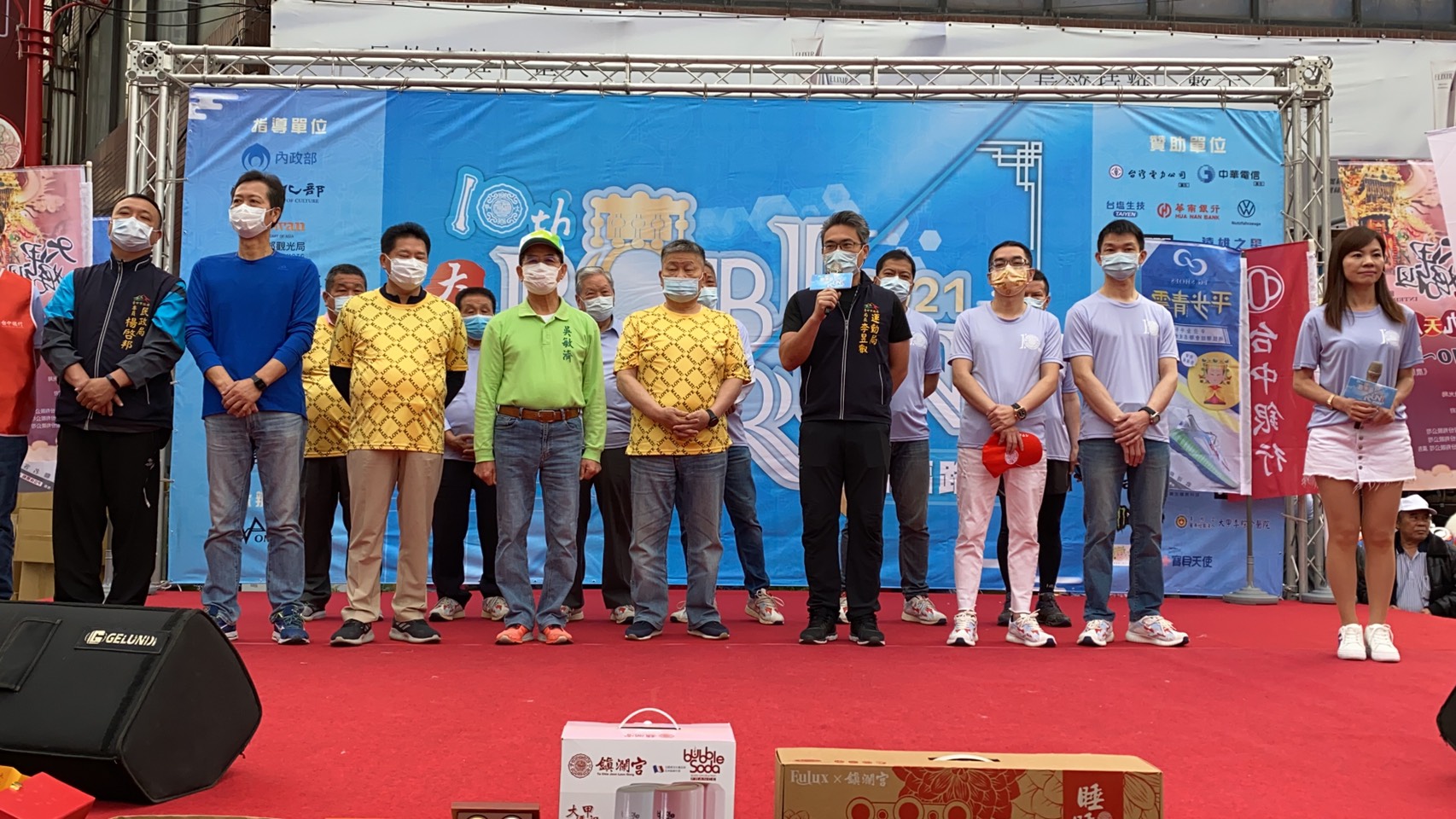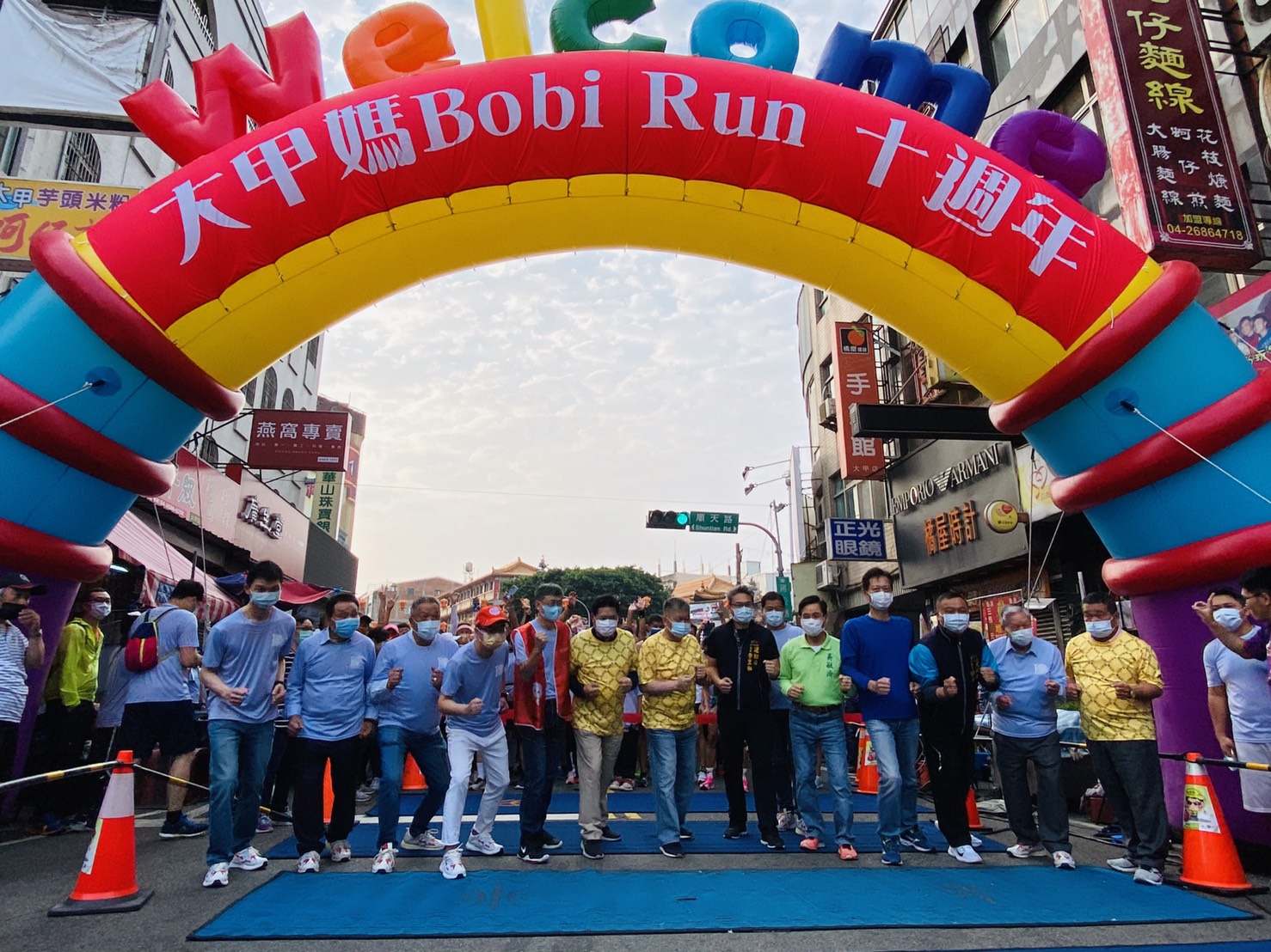 由大甲鎮瀾宮舉辦的「2021大甲媽 Bobi Run 十周年活動」今(28)日熱鬧開跑,現場齊跳活力早安操,並由媽祖前導車引領跑友自鎮瀾宮起跑,一起跑出活力健康,同時祈求國泰民安。