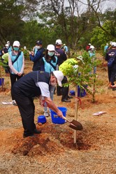 農業局指出,今年因應各機關團體植樹贈苗活動及社區環境綠美化需求,已協助提供4萬餘株的羅漢松、石斑木、杜鵑、桂花、矮仙丹、七里香等綠美化苗木,此次活動也種植100株苗木,活動現場並發放200株免費苗木供民眾領取,達到綠美化空間、淨化空氣之效。