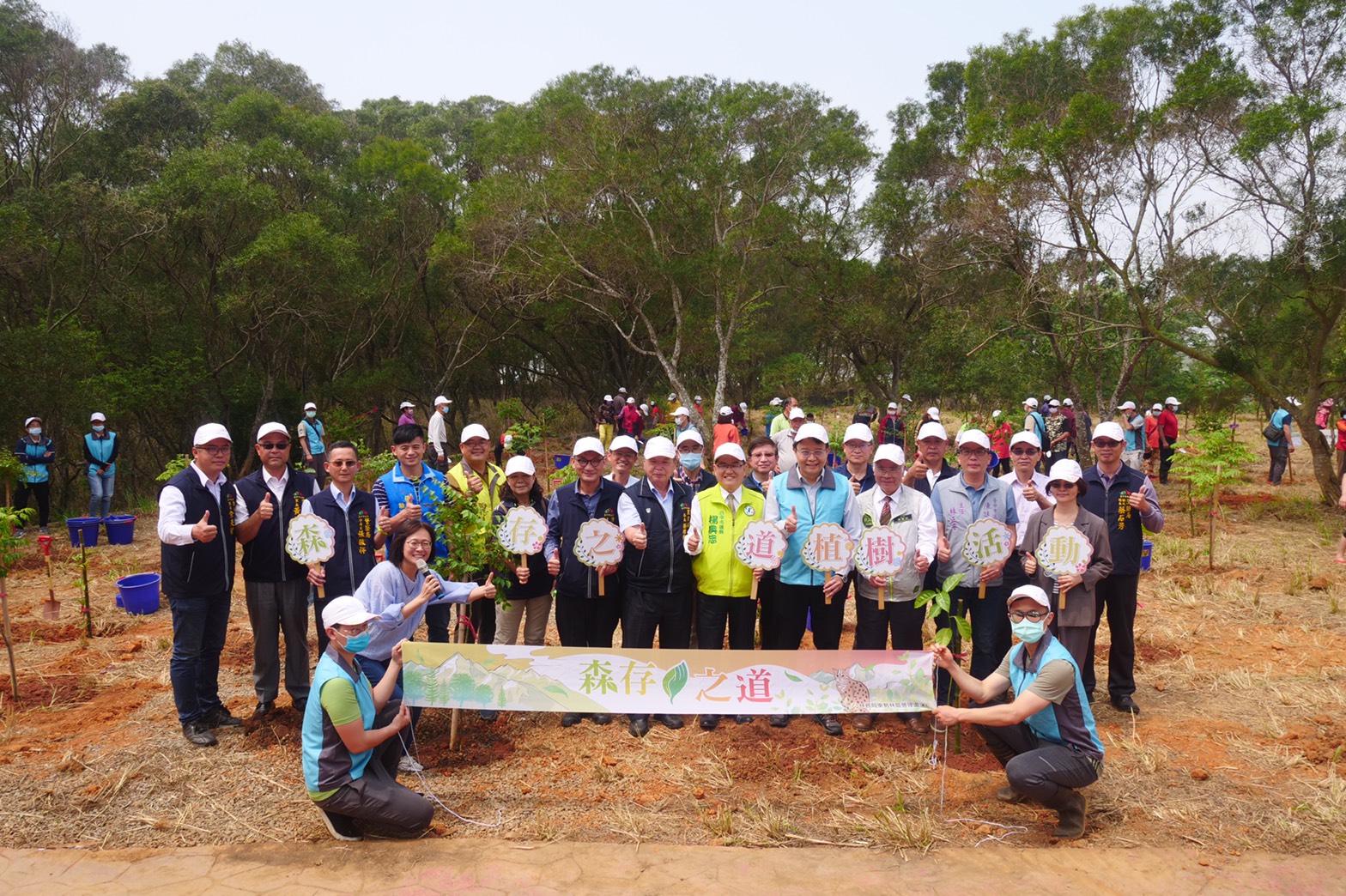 增加綠覆面積,台中市政府農業局、行政院農業委員會林務局東勢林區管理處今(29)日在清水區大楊油庫休憩公園,共同舉辦「森存之道」區域植樹活動,共計160人踴躍出席,農業局表示,透過大家親手學習植樹、護樹方式、落實環保意識,共同守護環境。