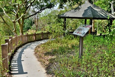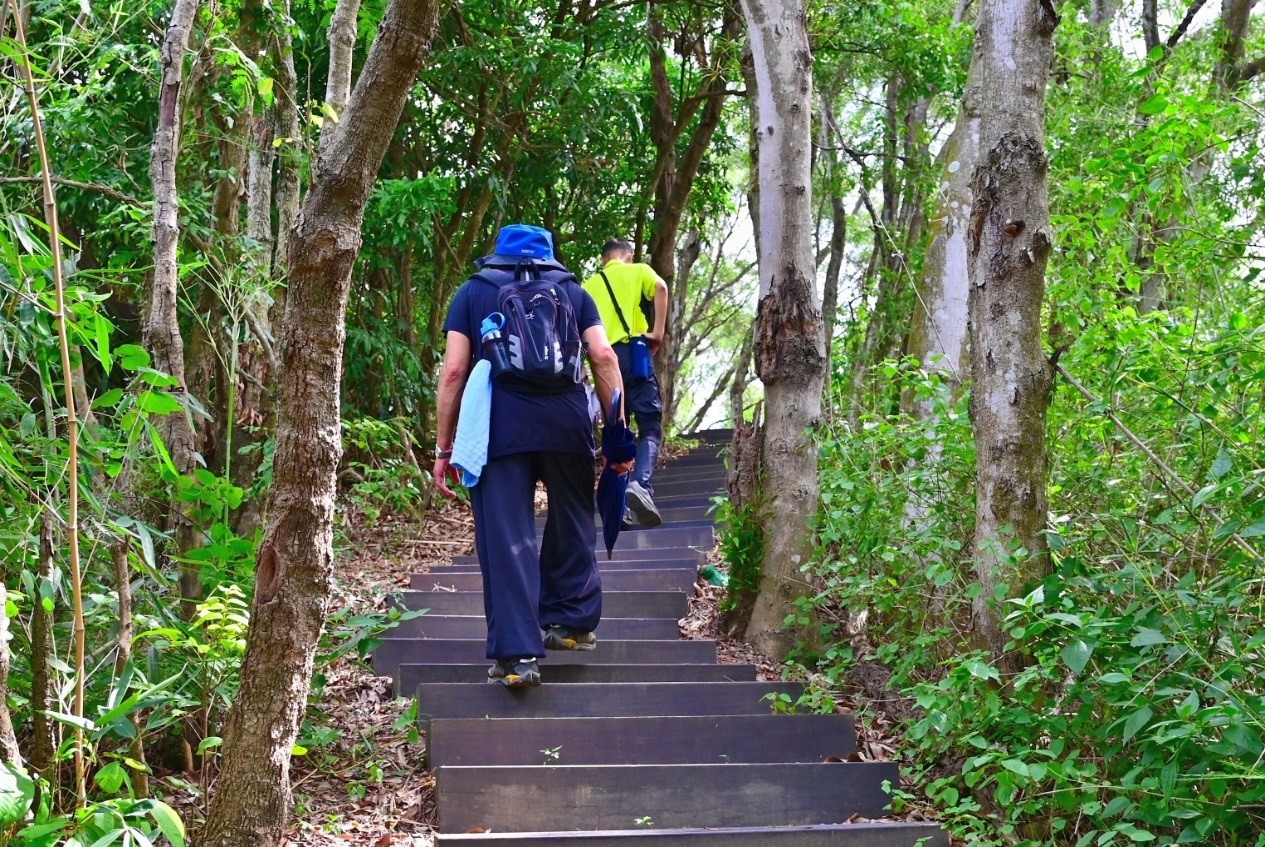 觀旅局推薦首站由中臺科大觀音山步道展開,鬧中取靜的地理優勢下,有著靜謐舒適的山林景致,為親子級登山步道,步道全長約1公里,適合親子同遊。綠葉成蔭的樹林包圍著蜿蜒步道,因枝繁葉茂有著不錯的遮陽效果,隨著山勢高度不同沿途呈現多變景觀面貌,而山頂視野開闊可眺望臺中市區及群山美景,可順便走訪位於南觀音山上的玉佛寺,其中巨大的佛掌心造景為年輕人喜愛的臉書熱門打卡景點。