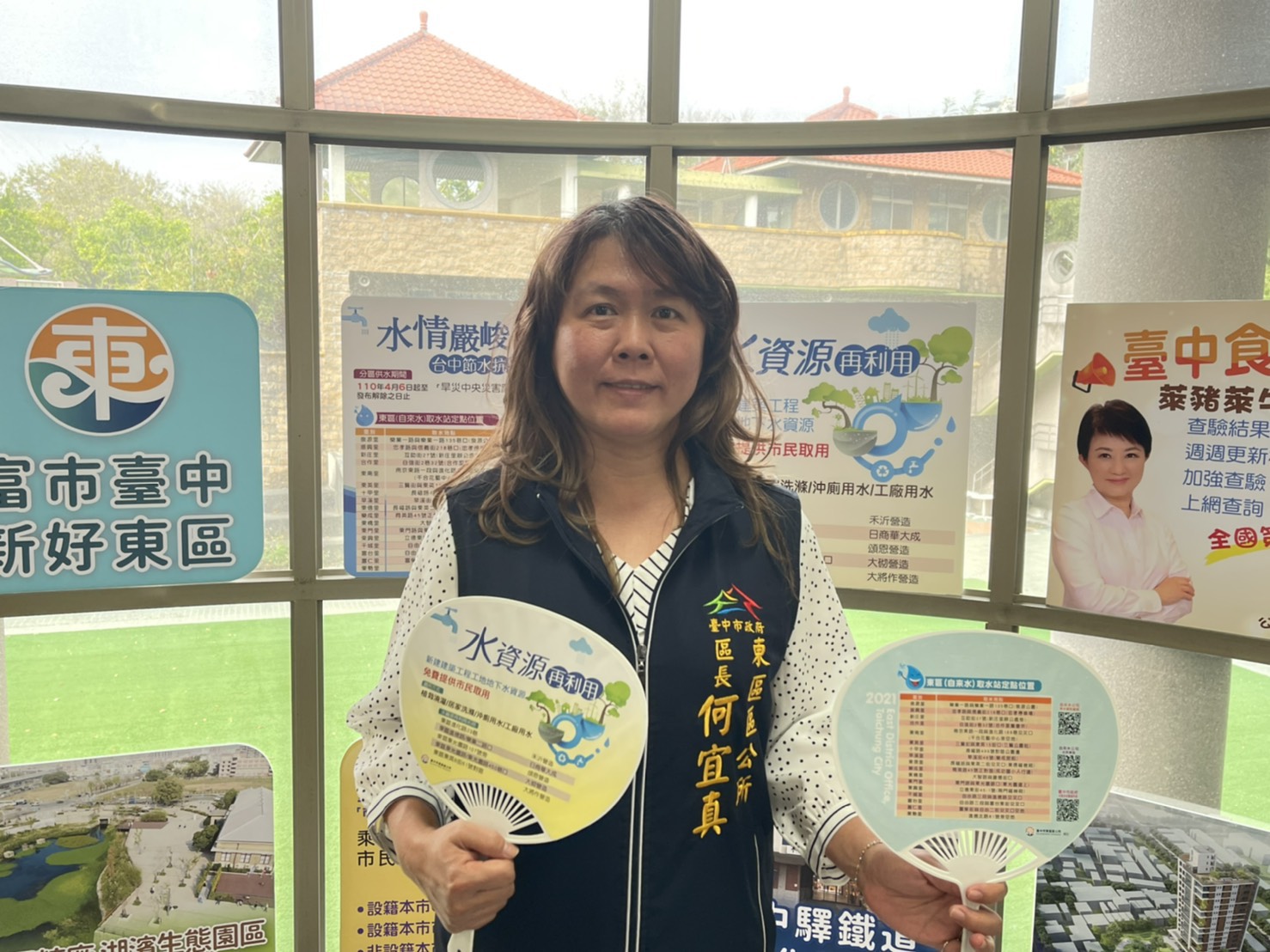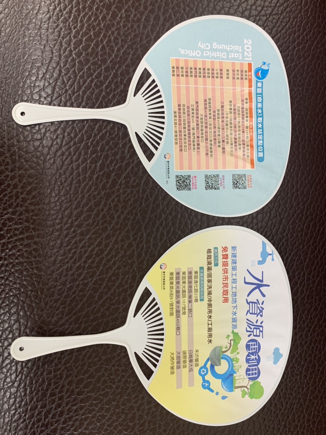 東區區長何宜真指出,為方便民眾了解水資源再利用相關資訊,東區公所製作分區供水相關措施「宣導扇」,內容包括分區供水區域、時間及東區各臨時取水站點,方便市民隨身攜帶、即時查看,還可以搧風解熱,一舉數得,有需求的民眾41日起可至東區各里辦公處或區公所免費索取,數量有限,送完為止。