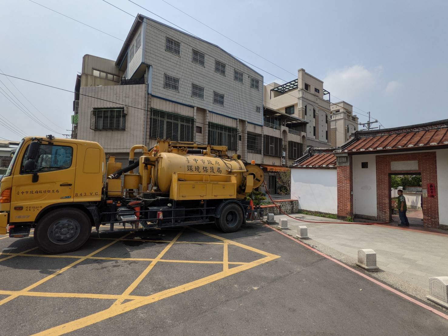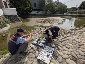 近期因久旱無雨,市定古蹟神岡區社口林宅(又稱社口大夫第)魚池日漸乾涸,池內魚群奄奄一息,台中市神岡區清潔隊日前接獲通報後,立即到場勘查,緊急派員取用營建工地地下水馳援補充水源,同時檢測池內水質,確保魚群安全,此次共動員1輛清溝車、6名清潔及稽查人力、輸送約5公噸水量,順利完成解救魚群的任務。