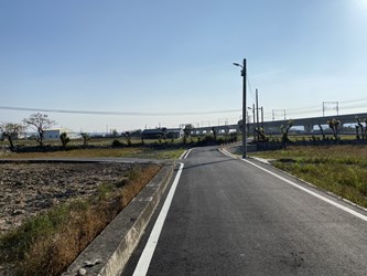 臺中市大甲區東明路高鐵橋下旁農路,為幸福里居民及農機出入重要通路,長年承受農機具重壓造成路面龜裂及陷落,亦因路面寬幅不到兩米,農機具進出須繞道行駛外,時有不熟悉路況者摔落。為保護農民及用路人通行安全,水利局辦理改善工程,工程除避車道施作外,也將部分破損路面修復,工程經費共計約100萬元,於今(110)年2月底完工。