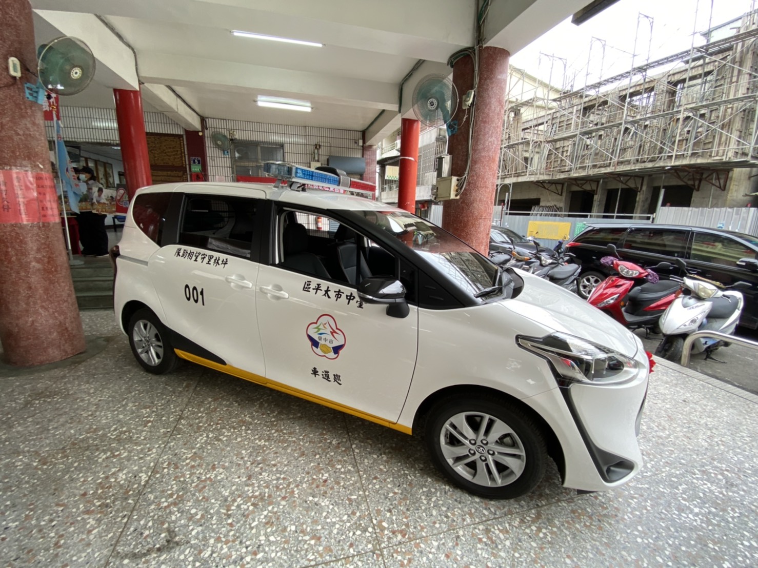 今日交車儀式包括太平區長許貴芳、市政顧問莊子富、在地里長及守望相助隊隊員等人到場觀禮,另外,立法委員何欣純、市議員李麗華、張玉嬿、蔡耀頡也派員到場致意。(4/8*8)*民政局