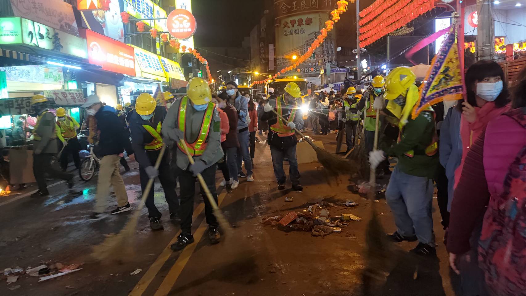大甲媽昨(9)晚深夜起駕,展開98夜遶境,台中地區將經過大甲、清水、沙鹿、龍井及大肚,台中市政府環保局動員約3,000名環保志工及200名清潔隊人力,沿途清掃鞭炮屑與垃圾,以掃街方式參與遶境並維護市容環境,呼籲民眾做好垃圾減量與資源回收,同時佩戴口罩加強防疫,共襄盛舉一年一度的台灣宗教盛事。