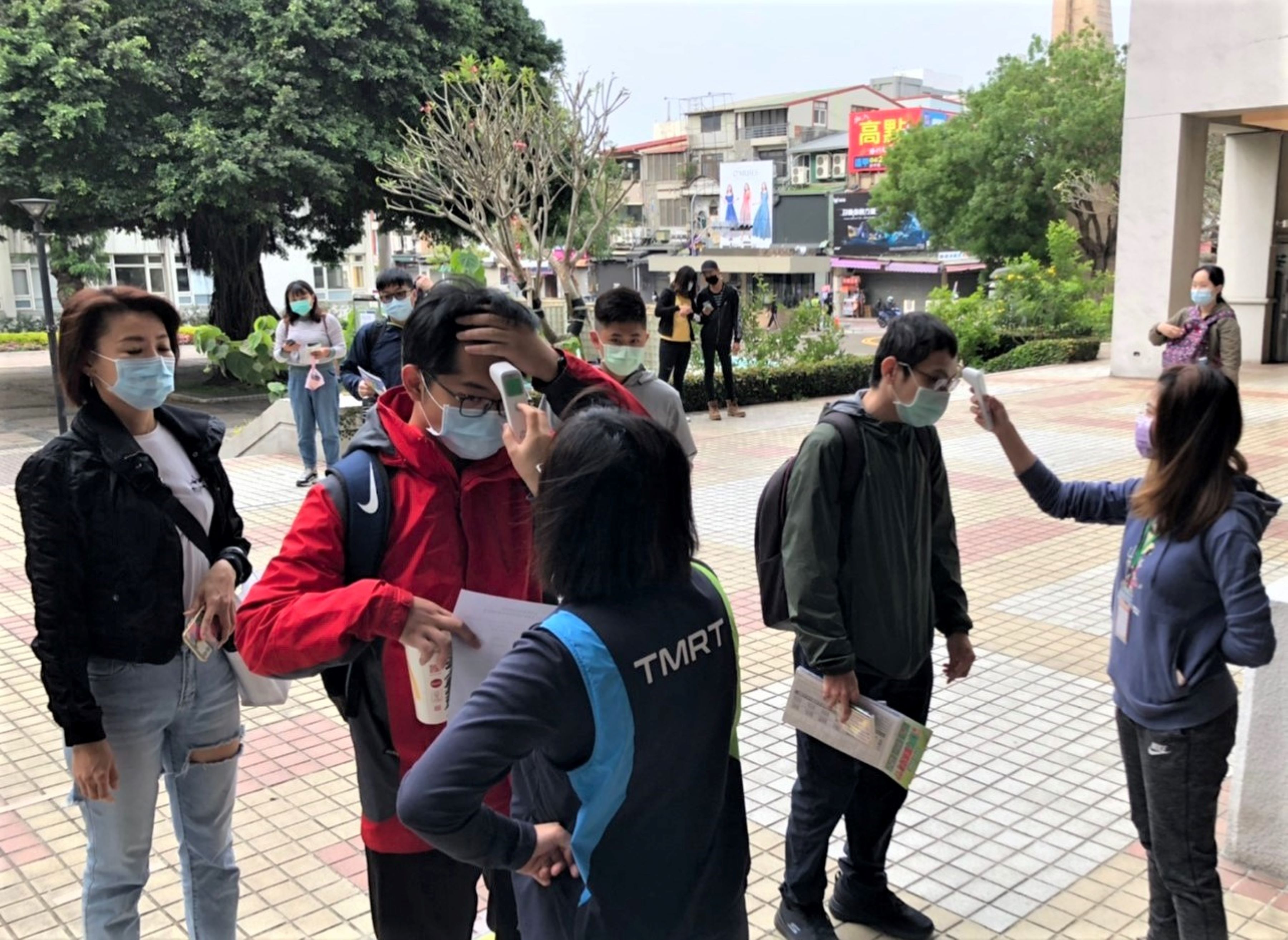 由於目前為防疫期間,考場依規定採取防疫措施,包括考生進出動線分流,進入考場前必須完成填報線上關懷表並量測體溫,若額溫高於37.5度,試務中心即啟動防疫考場,今日所有考生體溫量測均正常。