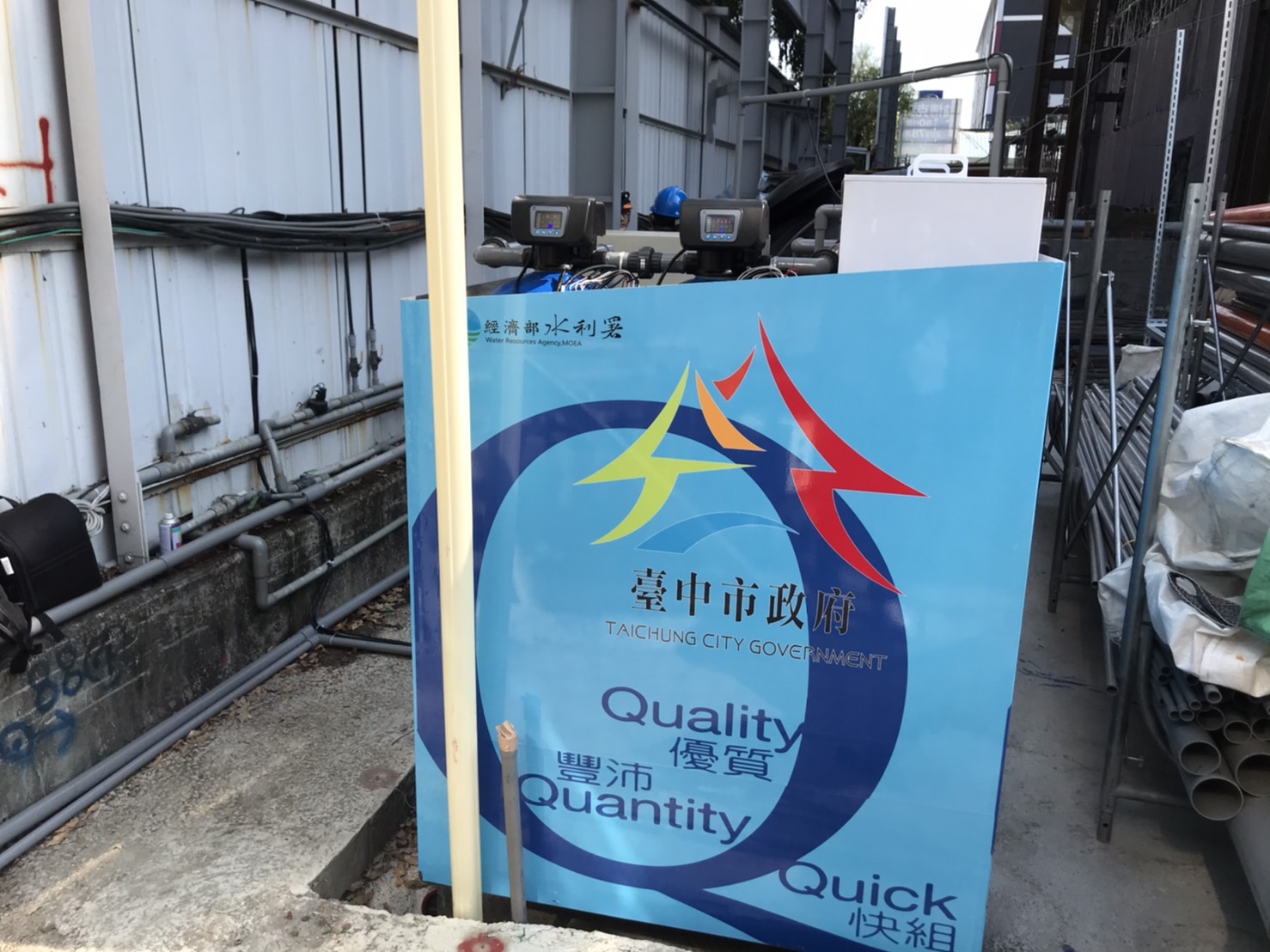 第1部小型移動式淨水設備已設置於本市南屯區文心南路及文心南五路交叉口的「文心愛悅」建築工地