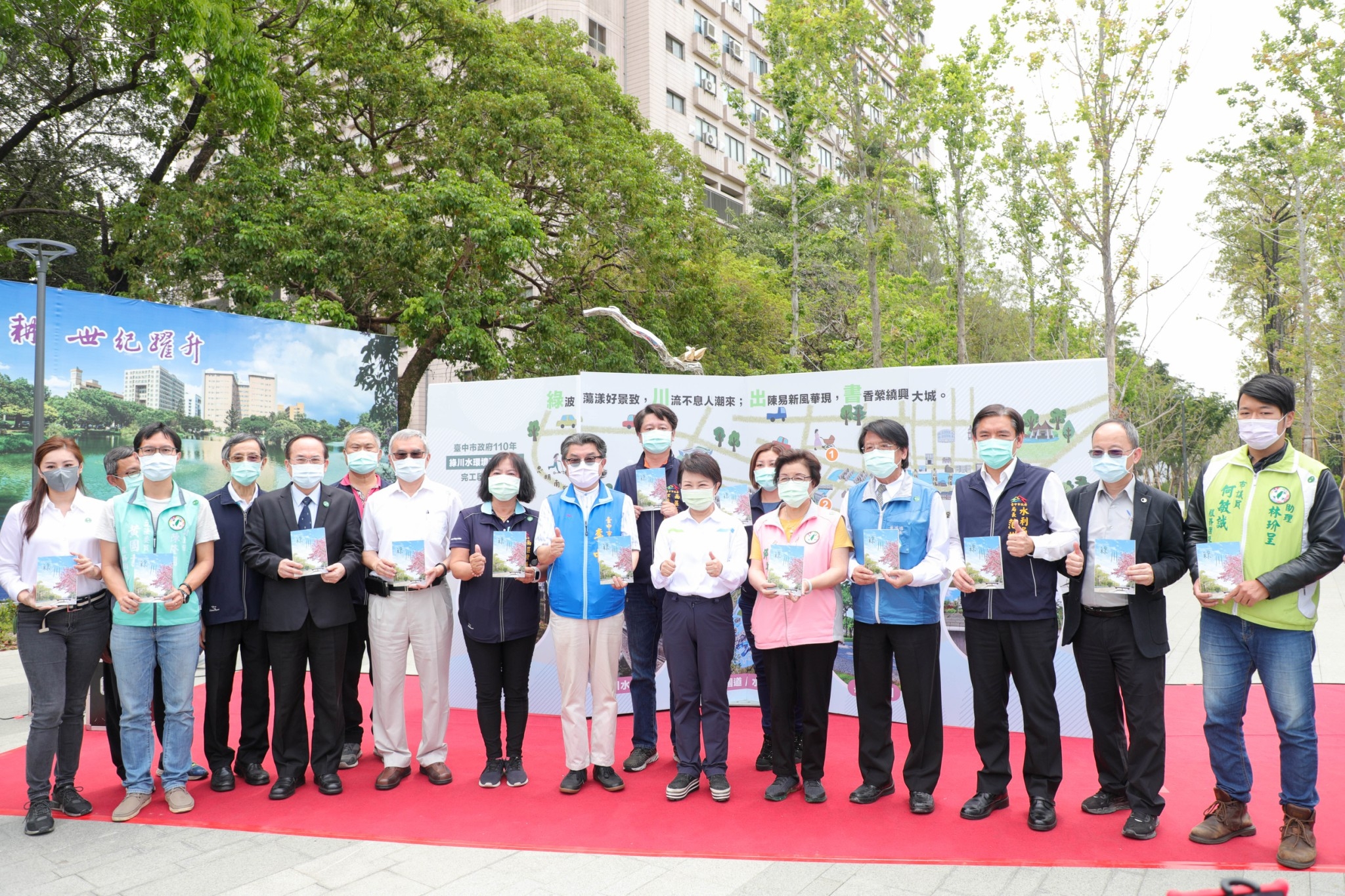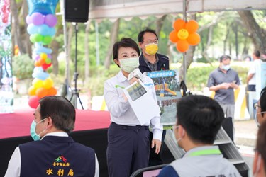 盧市長表示,綠川是台中重要河川之一,歷任市長皆全力整治,範圍集中於中、西區,她接棒後將工程延伸至南區,並分為興大段(信義南街至忠明南路)、長春運動中心段(愛國街至信義南街)及綠空鐵道段(民權路至復興路)三大段進行,總經費10.5億元,她感謝中央與地方民代爭取中央補助經費,也感謝水利局不辭辛勞,開工前4個月持續與鄰里7位里長與公民團體溝通協調並聆聽建議,讓整治工程前年6月開工,今年全數完工。