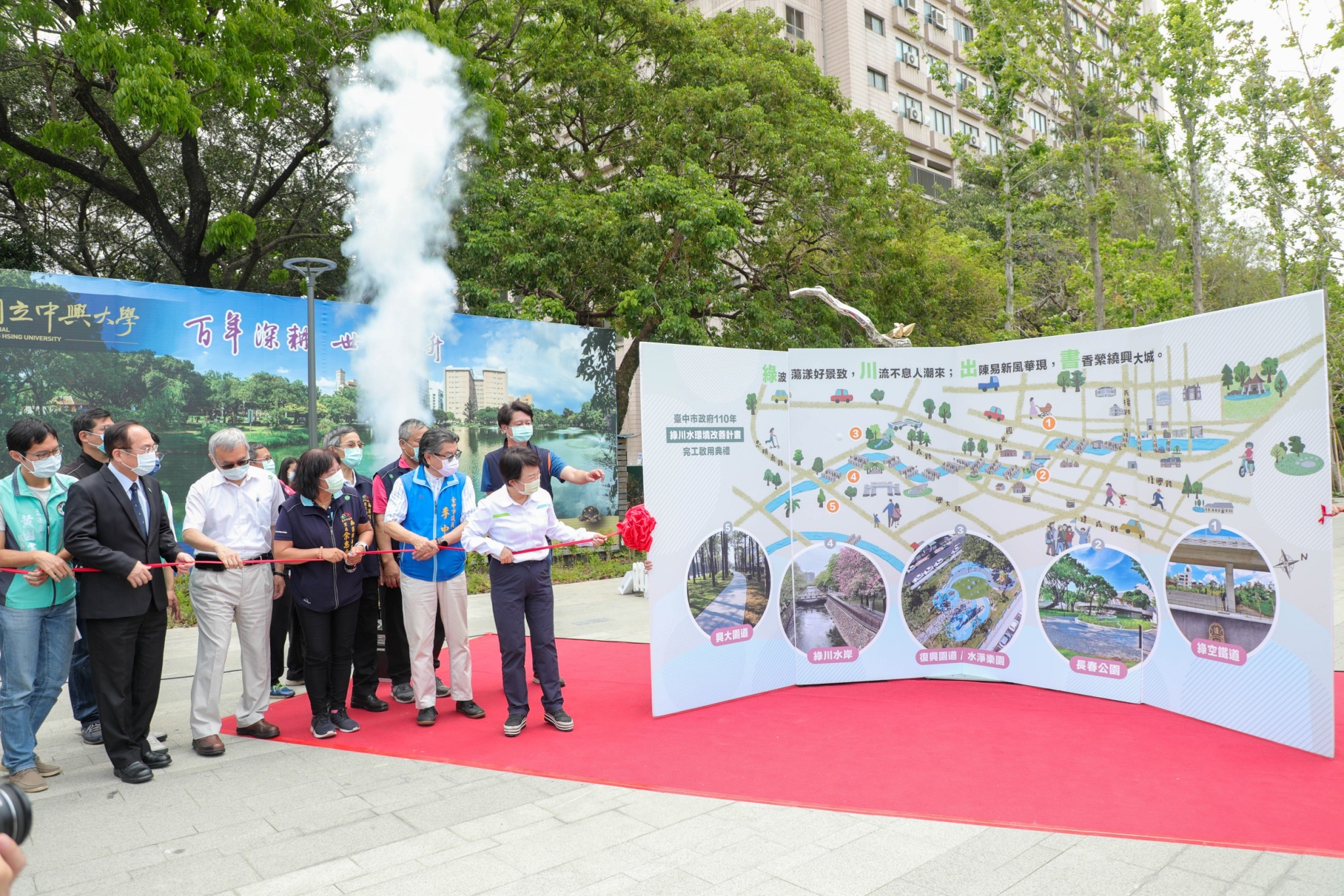 中興大學副校長楊長賢說,世界許多著名大學皆與城市周邊連結,此次配合水環境改善計畫,師生均全力支持,除完成校務中長程計畫中的一環,也將新設校門,讓更多居民到學校休閒遊憩。