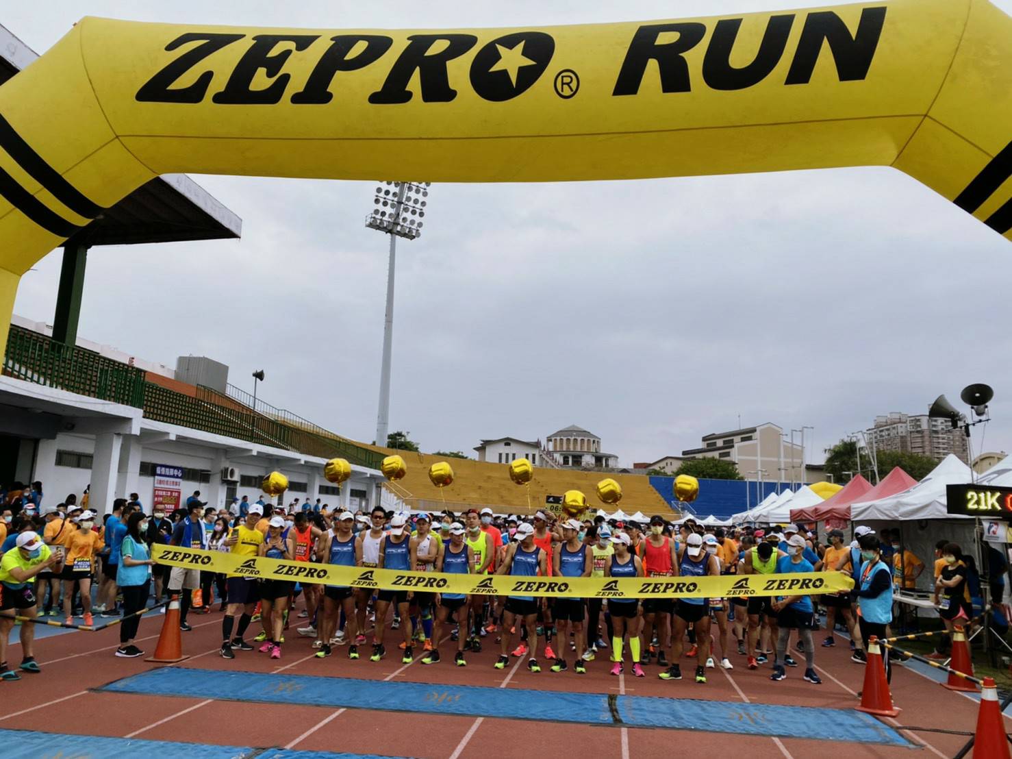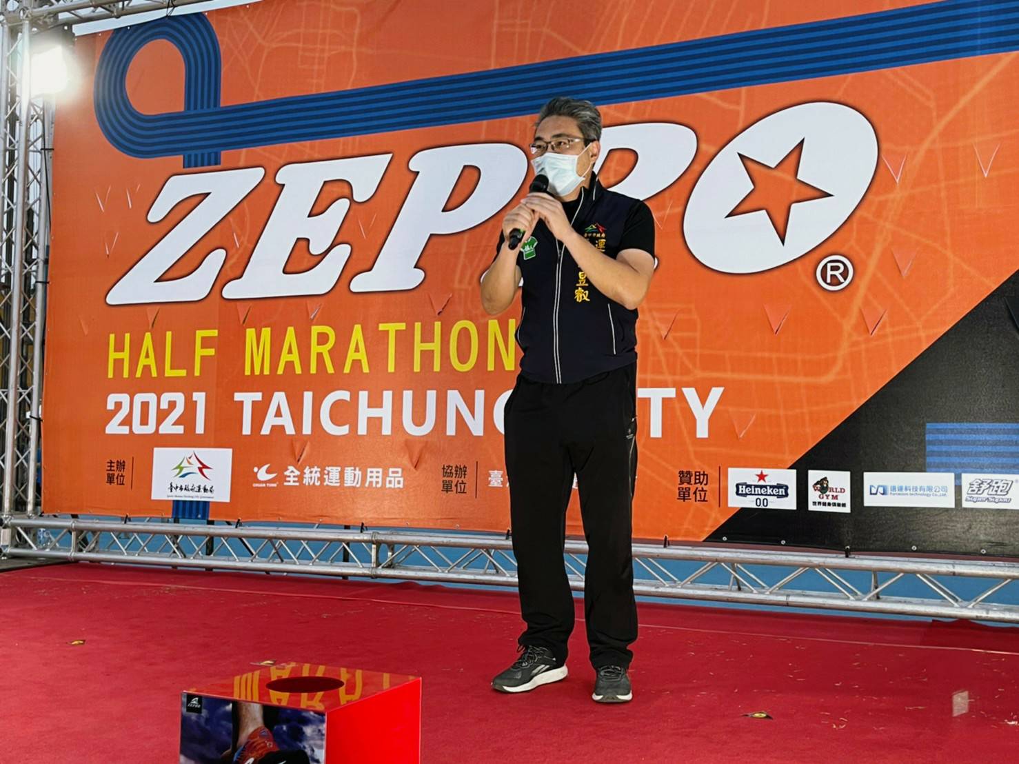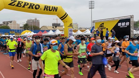 響應防疫新生活運動,全統運動用品股份有限公司舉辦「2021 ZEPRO RUN 全國半程馬拉松-台中場」,今(18)日於豐原體育場起跑,超過4千名跑者參加,最高齡93歲的跑友劉心鈺女士也完成6公里挑戰,市府運動局長李昱叡到場加油打氣,他表示,期盼透過舉辦多元賽事,提升能見度、帶入觀光效益,養成市民運動習慣及風氣。