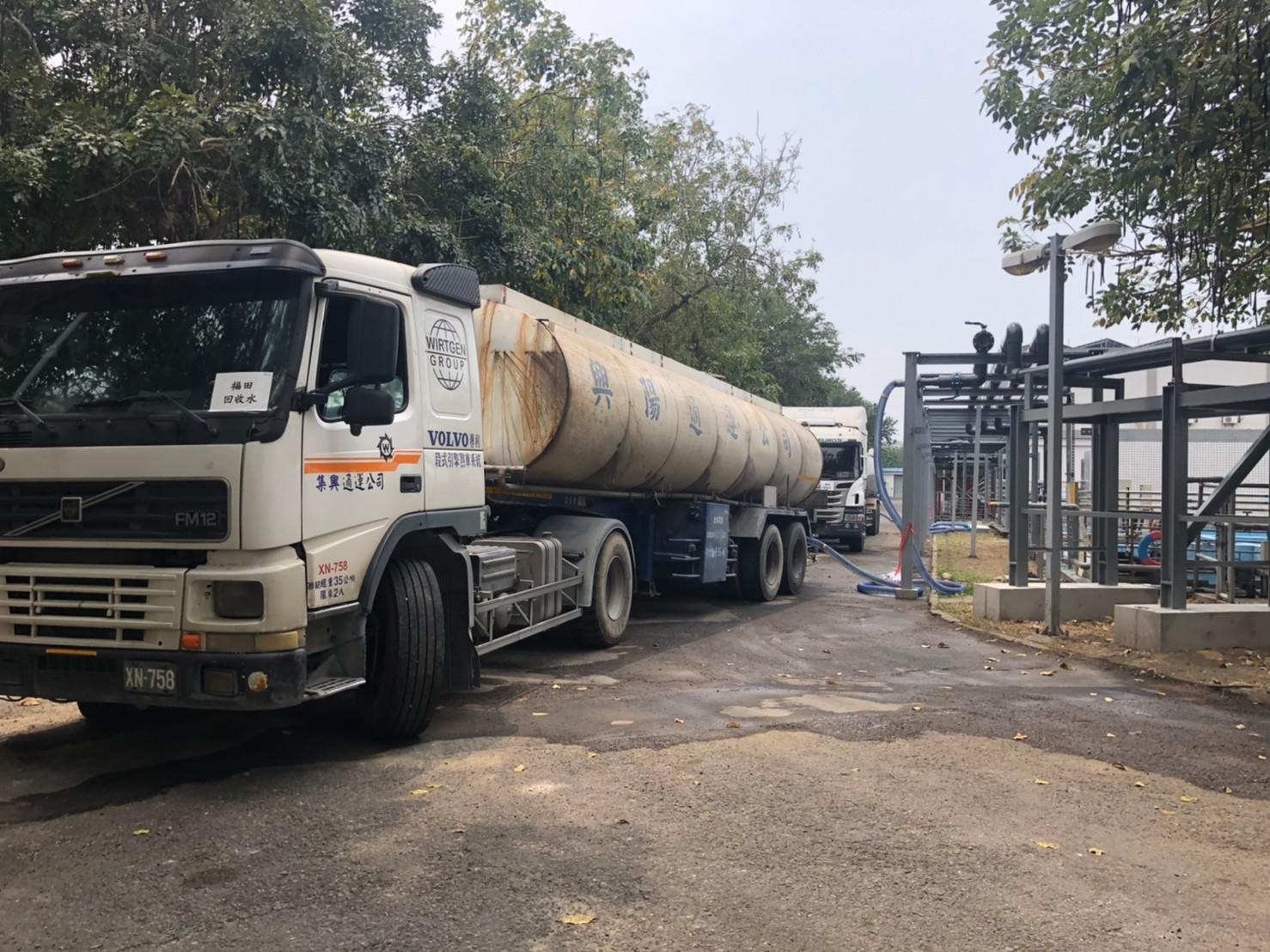 水情持續惡化,中央已啟動分區供水,臺中市自4/6起開始每週供5停2分區限水,台積電已於日前向水利局提出自行出資在福田水資源回收中心申請設置12處取水口,每日總取水量為4,800噸,現已完成8處取水口設置,自今(20日)日起調派水車至福田水資源回收中心載運放流水回中科廠再淨化後使用。