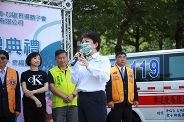 盧市長表示,感謝昇陽獅子會榮譽創會理事長張明吉賢伉儷,看到社會需要,發揮大愛捐贈救護車及善款;也謝謝百姓公慈善功德會捐贈關懷基金,幫助大里、太平、霧峰區的弱勢學童,讓孩子們能專心向學。