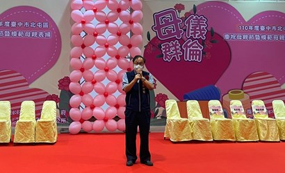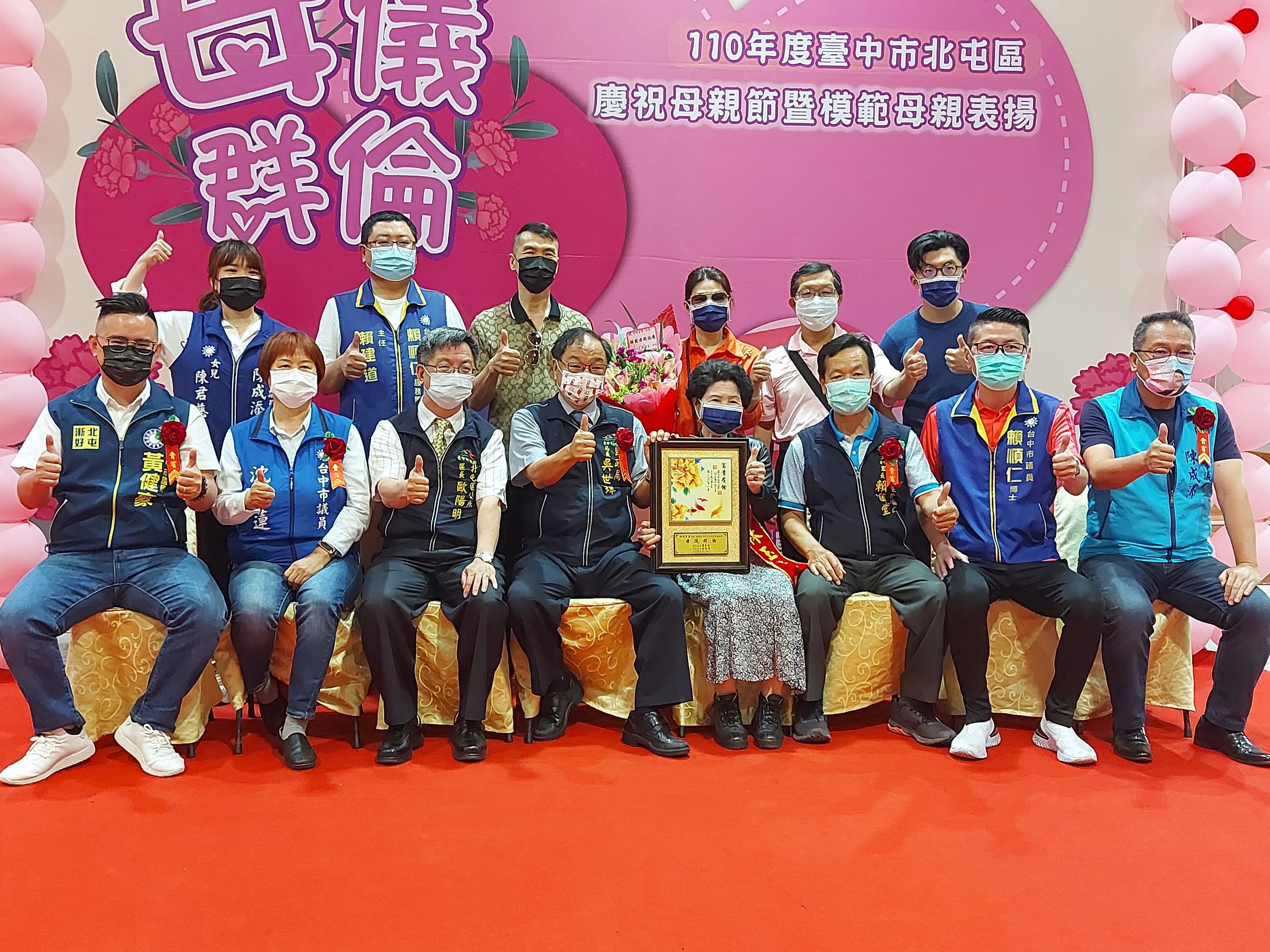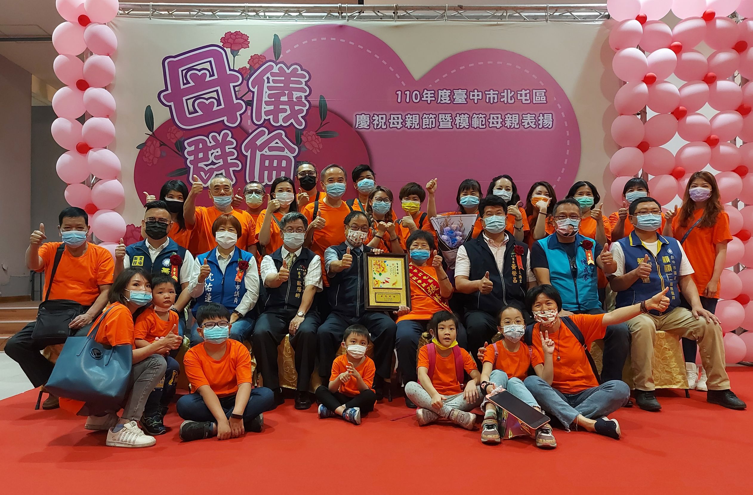 溫馨母親節即將到來,台中市北屯區公所今(24)日上午在公所舉辦「110年度模範母親表揚活動」,民政局長吳世瑋代表市長盧秀燕出席頒發「母儀群倫」獎牌,表揚52位辛勞付出的模範母親,感謝她們無私奉獻,並預祝所有的媽媽們「母親節快樂」,家庭美滿幸福。