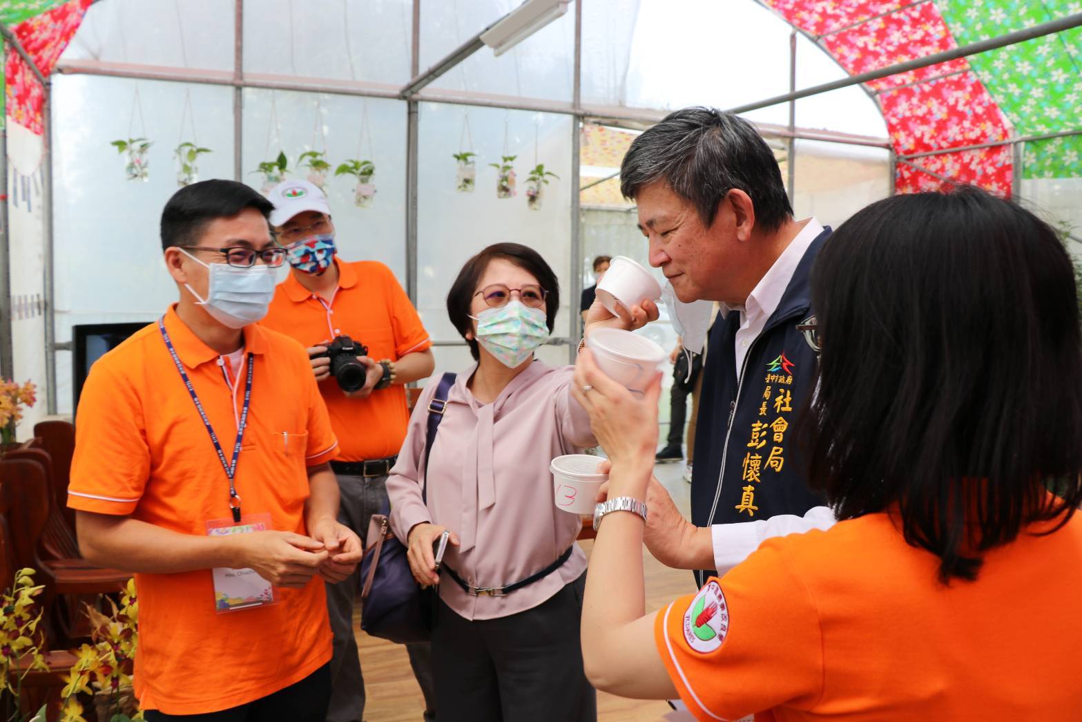 今日活動出席人員包括行政院農業委員會台中區農業改良場長李紅曦、台中市政府農業局長蔡精強、社會局長彭懷真、田園老人渡假養護中心董事長陸桂森等人。(4/30*14)*農業局