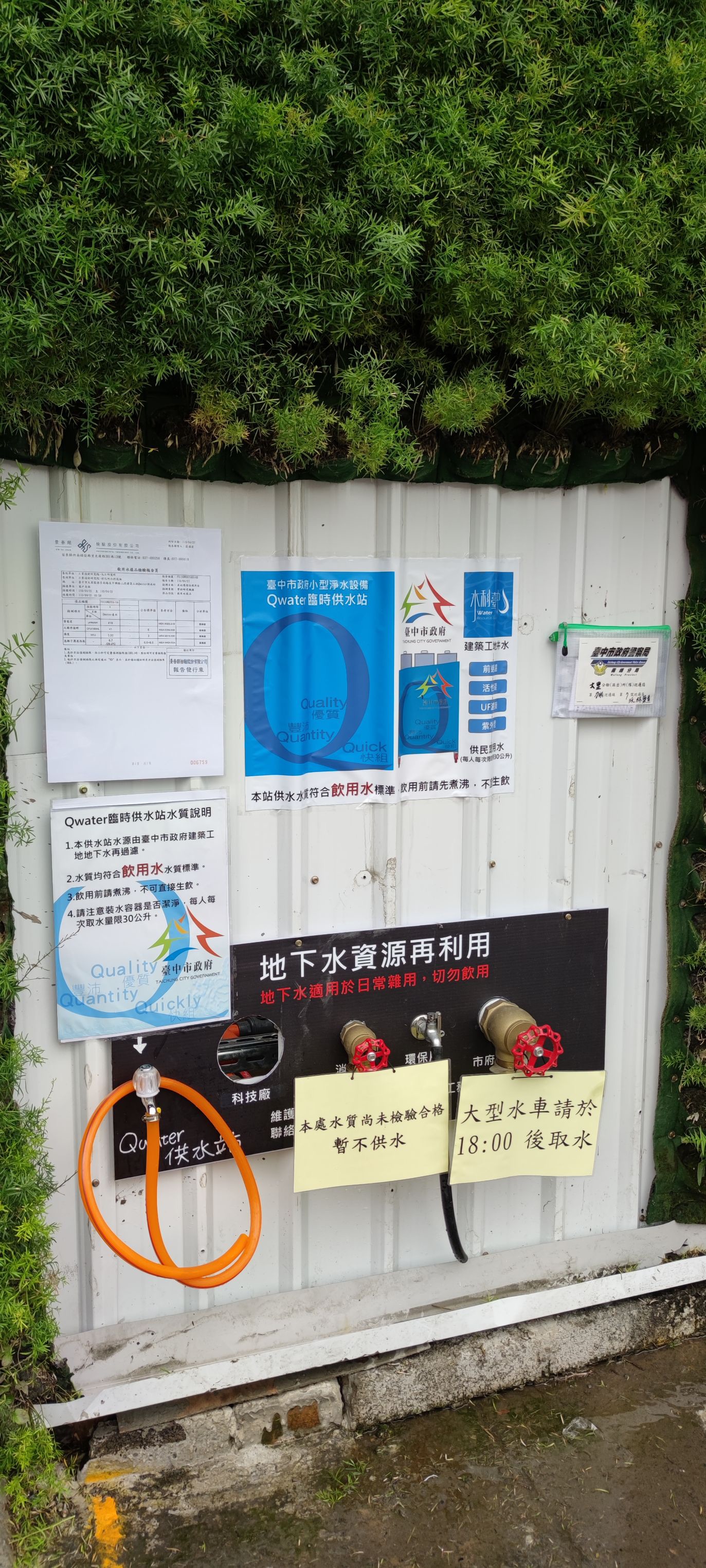 目前雖有零星降水,但水情仍未舒緩,臺中市持續以供52方式分區供水,市府水利局已於今年46日在本市南屯區文心南路及文心南五路交叉口建築工地設置第1部小型移動式淨水設備,另外9部小型移動式淨水設備也在430日前陸續設置於大里區、北區、東區、烏日區、龍井區、西屯區、南區及沙鹿區之建築工地,一共設置10部小型移動式淨水設備,每部設備每日可產出約15噸的民生用水,其水質可達飲用水標準,但飲用前請先煮沸,勿直接生飲。