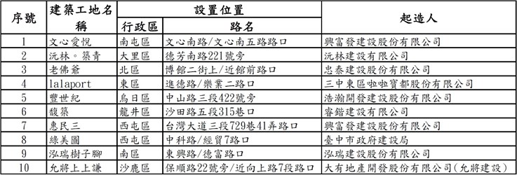 水利局表示,在市府都市發展局協調下,小型移動式淨水設備所設置位置的建築工地起造人均願意基於社會公益並善盡企業責任,提供設備設置空間及全額支付設備運轉所產生的電費等相關的協助,讓小型移動式淨水設備順利設置以供民眾取用,一同攜手抗旱。