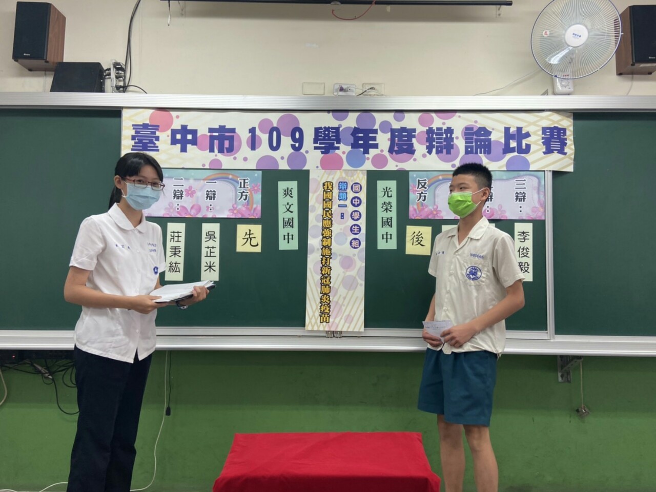 台中市政府教育局與地方稅務局聯合舉辦台中市公私立高級中等以下學校辯論比賽,今(1)、明兩日在市立光正國中登場,比賽分為國小學生、國中學生、高中職學生及教師等4組,共25隊參賽、150名選手參與,其中,教師組更以閩南語辯論,展現表達與反應能力,期望師生在辯論的過程中了解各項社會議題,拓展不同理念。
