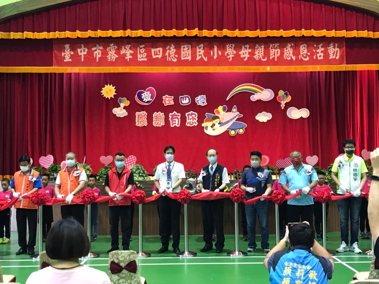 今日典禮由四德國小古箏社團和太鼓社團的琴韻悠揚、鼓韻傳愛開幕表演,同時舉行母親節感恩活動,配合禮堂整修工程完工啟用喜事,包含教育局楊局長、前立法委員顏寬恒、 市議員張滄沂、林德宇、李天生、四德里里長紀天富、南柳里里長暨四德國小校友會理事長林耀城、霧峰區農會理事長陳裕承、巫芯瑜妳同在慈善會理事長巫聖逸、四德國小家長會長魏建右、四德國小家長會前會長陳永河、四德國小家長會前會長林鈺軒、四德國小志工隊隊長許秀美均到場,典禮場面溫馨。