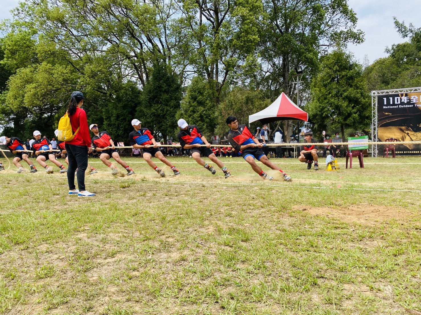 全台規模最大的室外拔河賽「中華民國110年全國室外拔河錦標賽暨2021世界盃室外拔河錦標賽國手選拔賽」今(2)日在台中市新社高級中學展開,共15個組別、62支隊伍,逾千位選手及職員齊聚,人數寫下新紀錄。運動局長李昱叡代表市長盧秀燕到場歡迎全國拔河好手到台中參賽,也祝賽事圓滿、選手取得佳績。