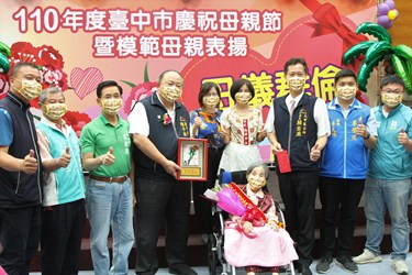 而來自庄美里的模範母親蔡蔭,現年92歲,21歲時嫁給務農的丈夫,育有六女一子,結婚超過70年,去年接受大甲區公所白金婚表揚。大甲區公所表示,雖然蔡女士不識字,但她堅信讓子女受到良好教育,才能擺脫貧困、立足於社會中,她的子女長大後各有成就,家庭生活美滿。