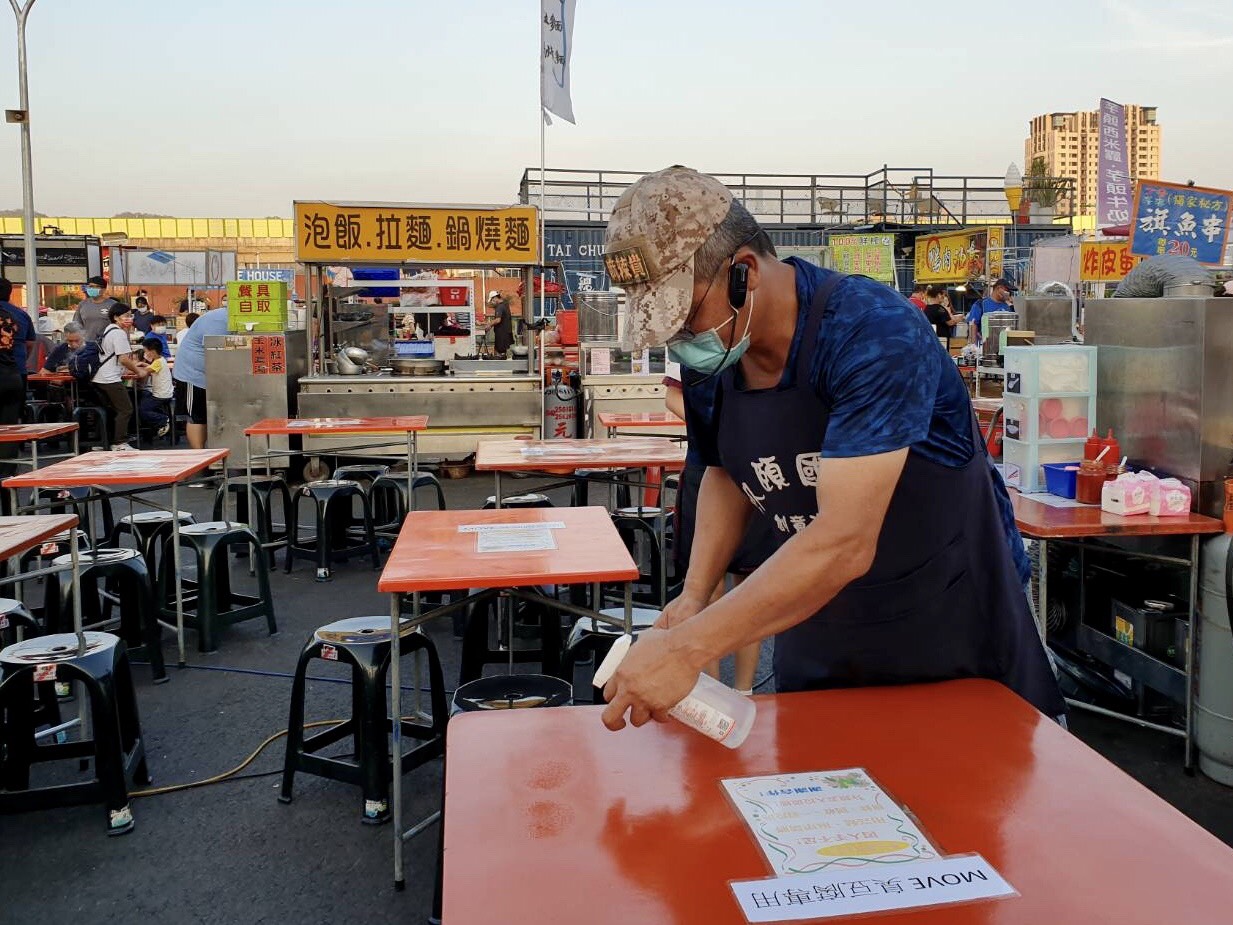 經發局表示,國內疫情升溫,加強防疫措施刻不容緩,市府已要求市集攤商及商圈業者營業時全面佩戴口罩、每日加強攤位清潔、熟食攤加裝透明遮罩、小吃攤內用座位加裝隔板、公共區域每週全面清潔消毒、賣場出入口設置酒精自動噴霧消毒器、廁所提供肥皂加強洗手、加強防疫宣導等,全力阻絕疫病,維護消費者健康安全。