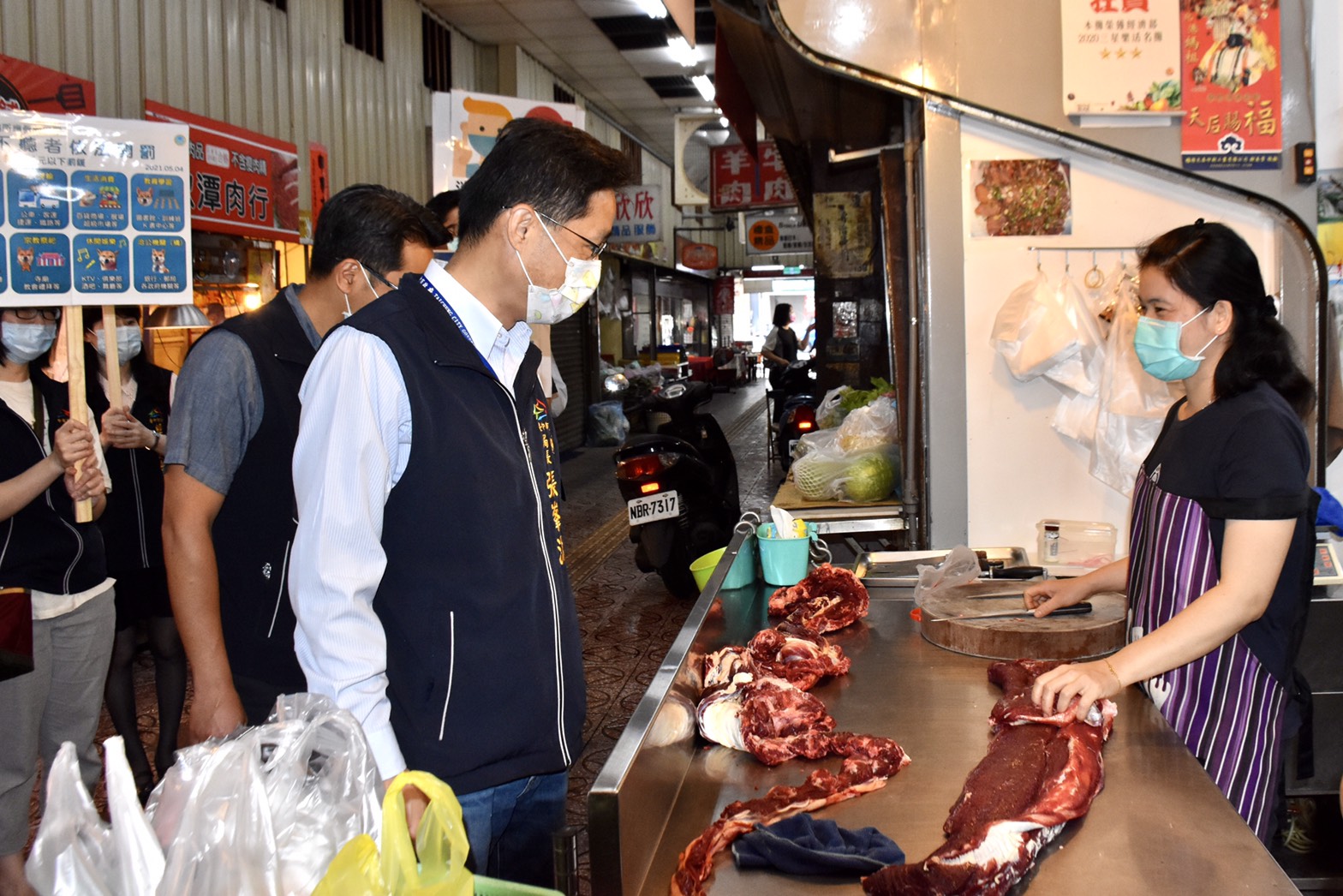 經發局長張峯源強調,華航機師及諾富特飯店群聚感染事件延燒,社區感染風險提升,為確保購物環境安全,市府持續加強稽查,落實公共場所防疫,守護市民健康,共同做好防疫工作,杜絕飛沫傳染,阻絕疫病傳播,讓消費者可安心購物消費。(5/8*7)*經濟發展局
