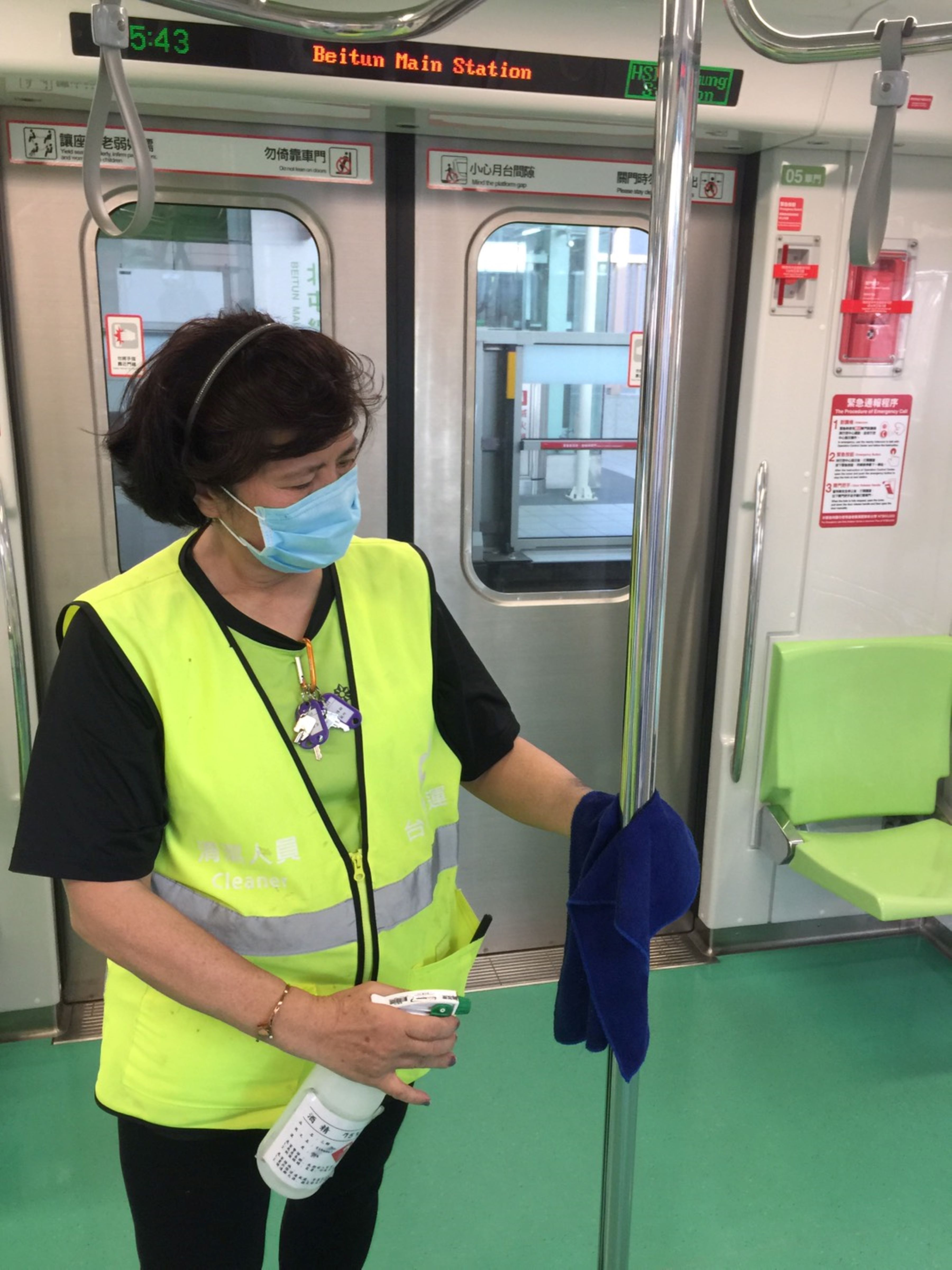台中捷運公司表示,車站、車廂及公司內部均嚴密防疫,針對車站重點消毒區域,包括樓梯及電扶梯扶手、電扶梯側板、電梯按鈕、售票機面板、詢問處外圍、廁所及其他旅客易碰觸區域等,以稀釋漂白水每4小時消毒1 次;高鐵台中站及市政府站因旅客量較多,提升消毒頻率為每3小時1次。
